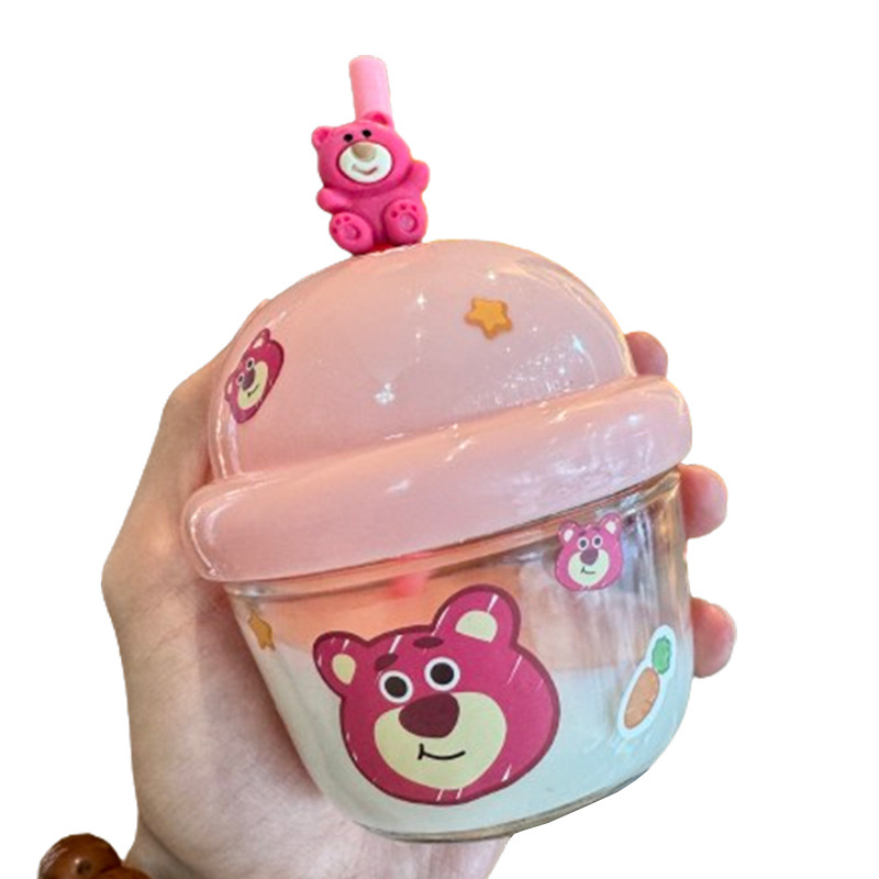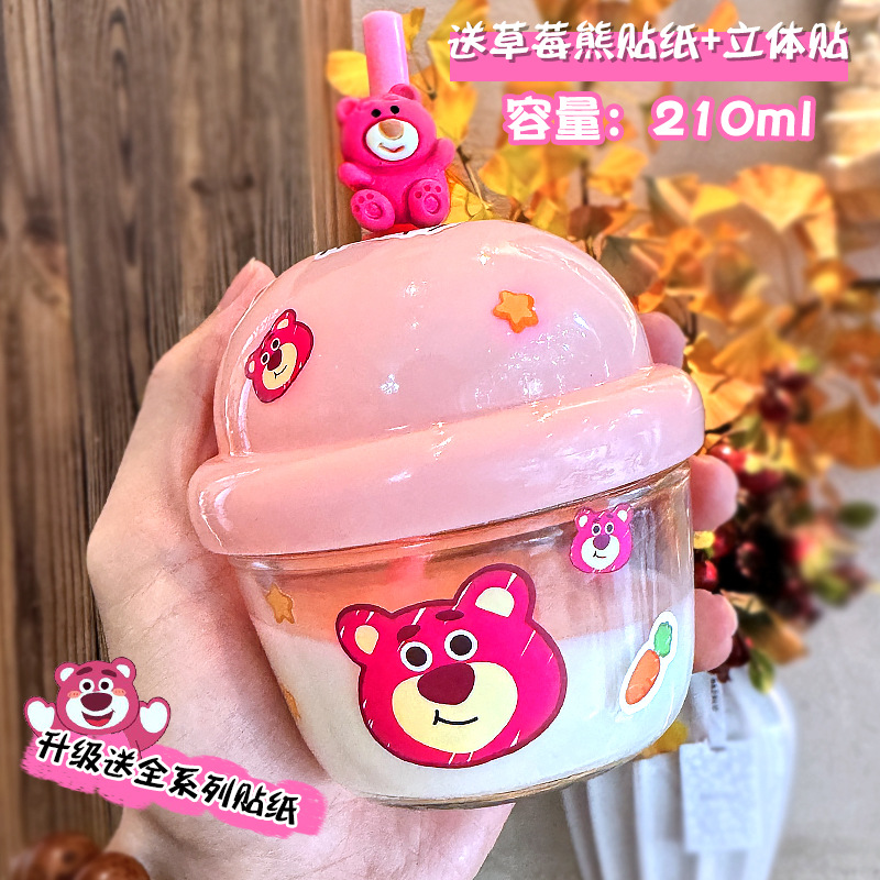 迷你网红新款墩墩杯草莓熊吸管杯冷水杯儿童水杯可爱便携咖啡水杯
