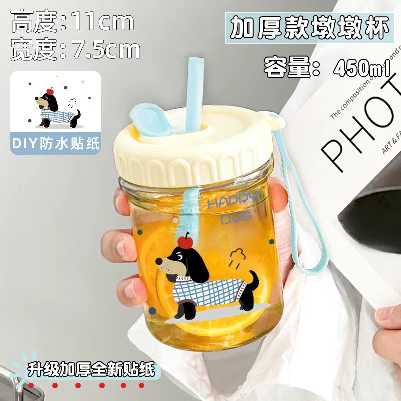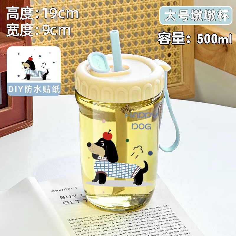 夏季可爱吸管杯玻璃杯女新款2025高颜值便携杯子迷你墩墩杯耐高温
