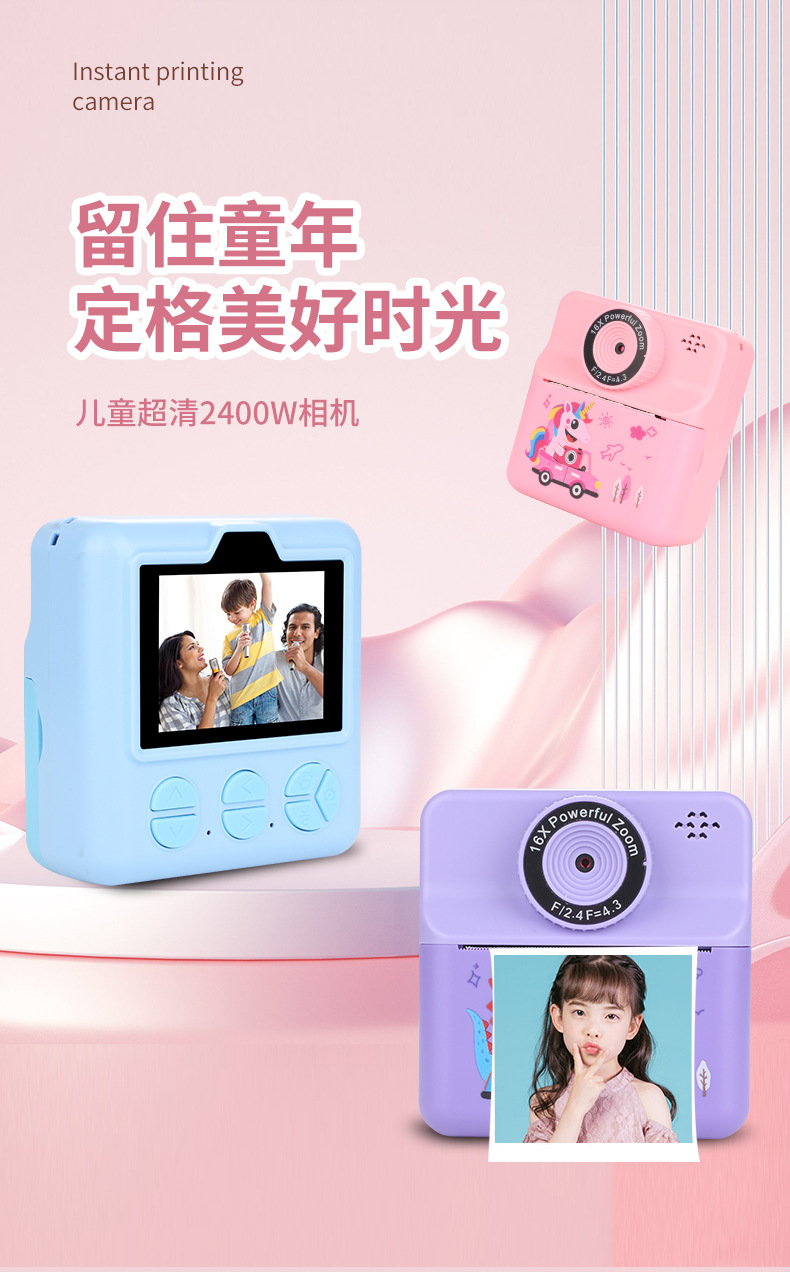 跨境新款儿童即拍即打照相机拍立得热敏打印数码相机可打印照片