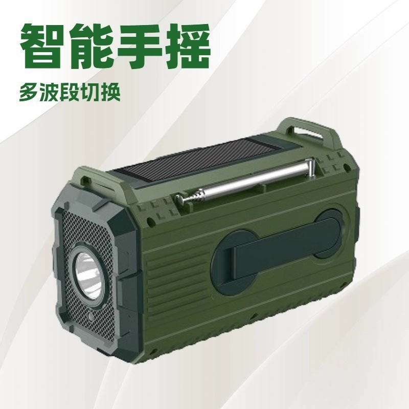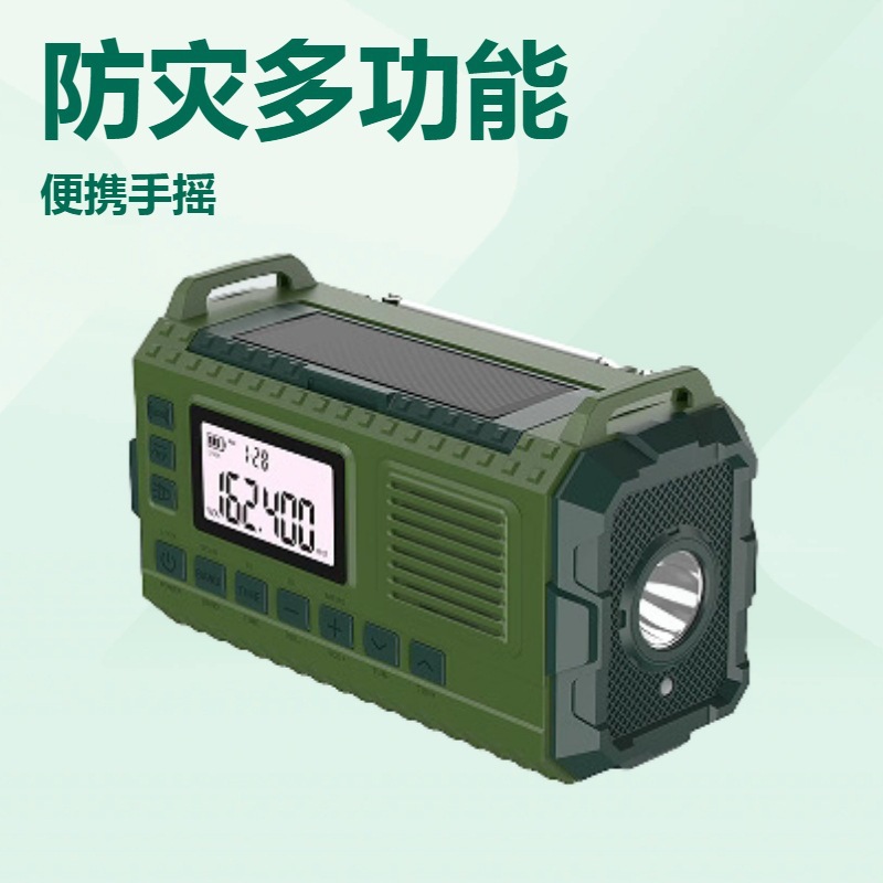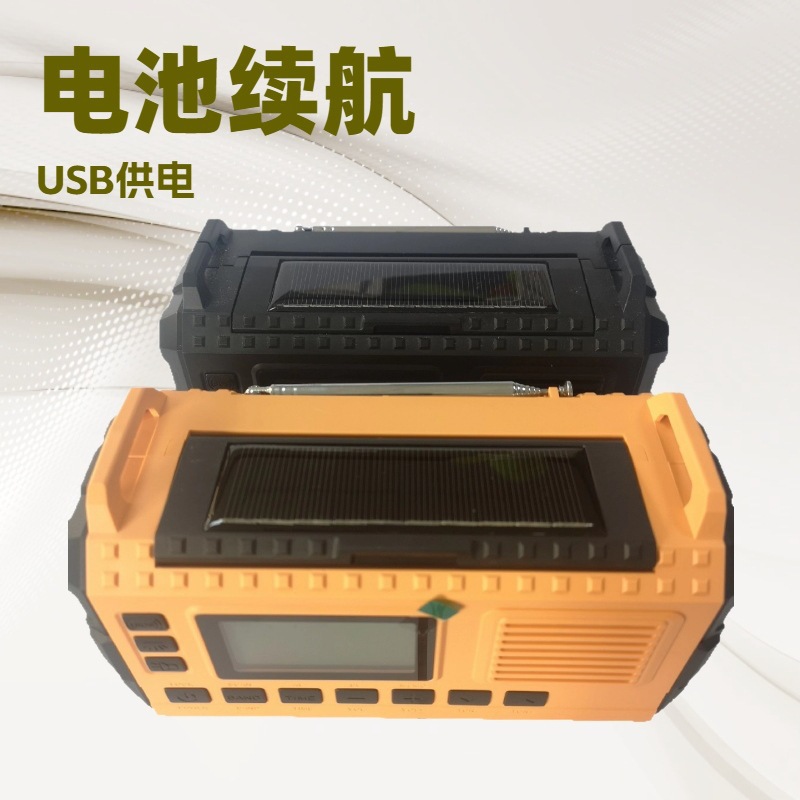 跨境外贸亚马逊新款户外应急防灾手摇发电太阳能手电筒SOS收音机