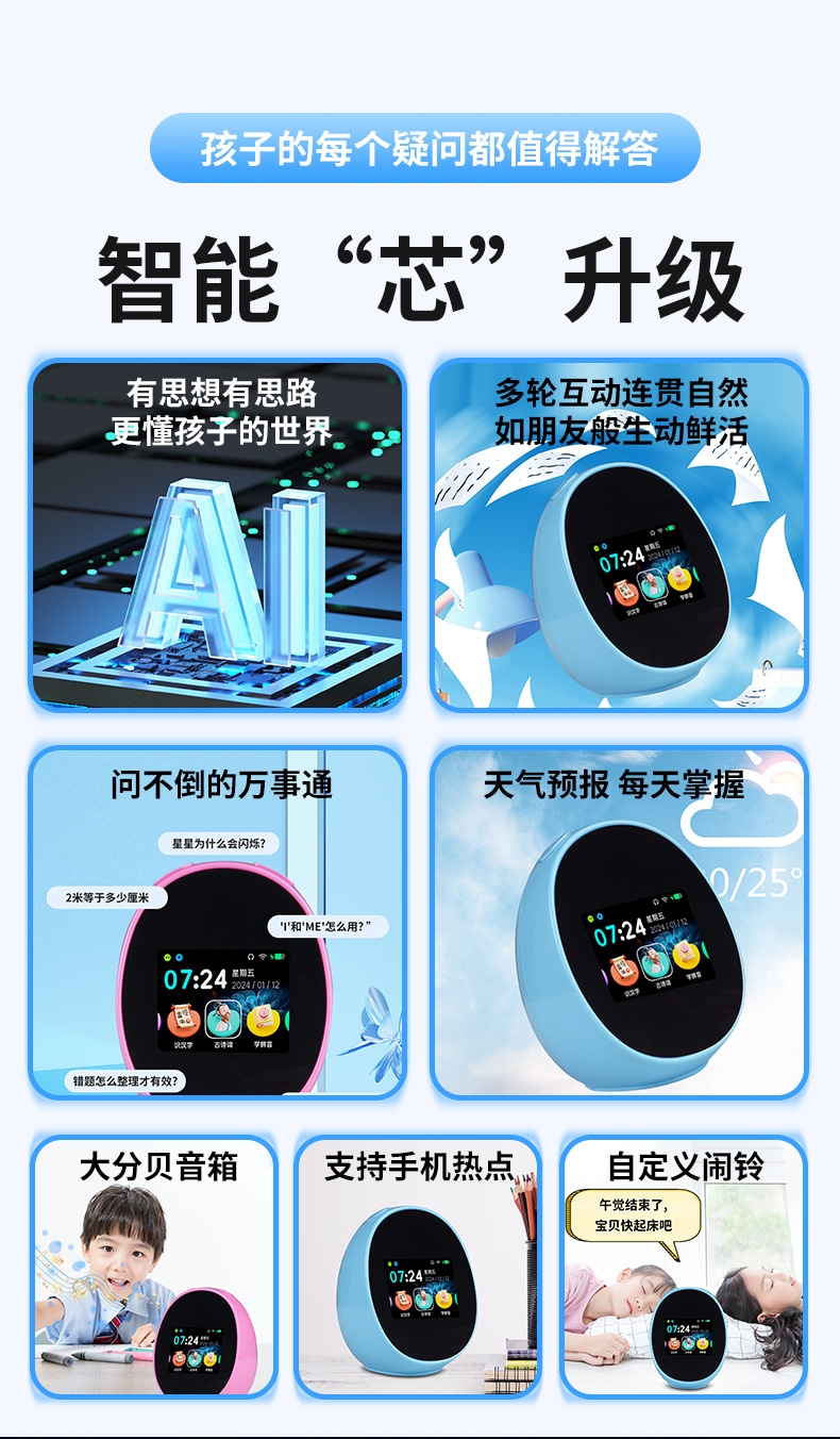 跨境私模外贸AI大数据模型M7智能闹钟语言触摸学生儿童早教机器人