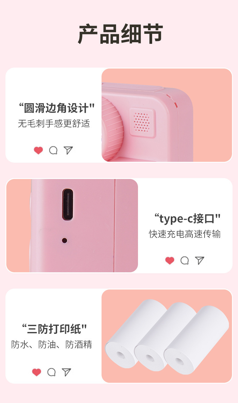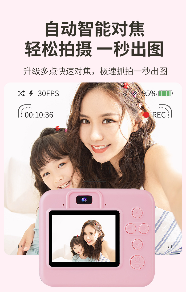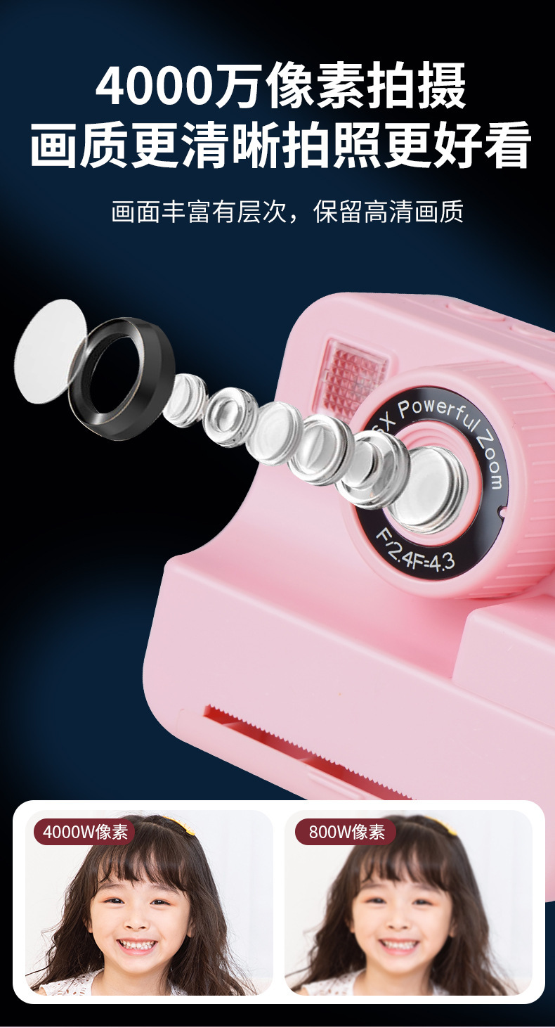跨境拍立得儿童彩色打印相机相片纸2.4寸高清屏数码相机即拍即打