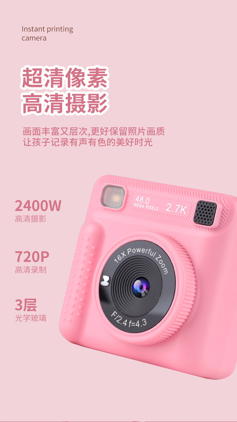 跨境拍立得儿童彩色打印相机相片纸2.4寸高清屏数码相机即拍即打
