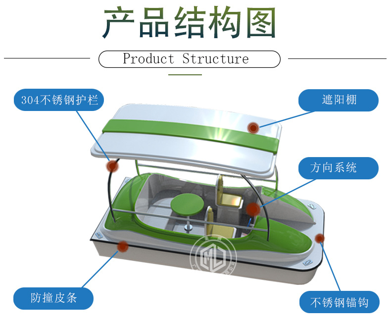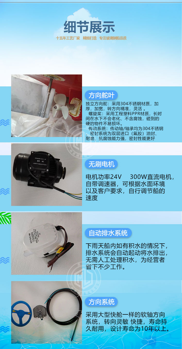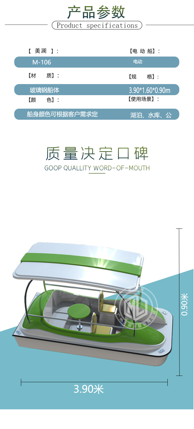 水上乐园4-5人电动船玻璃钢电动船景区观光电动船脚踏船游船定制