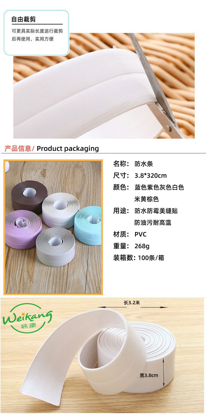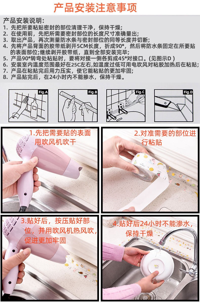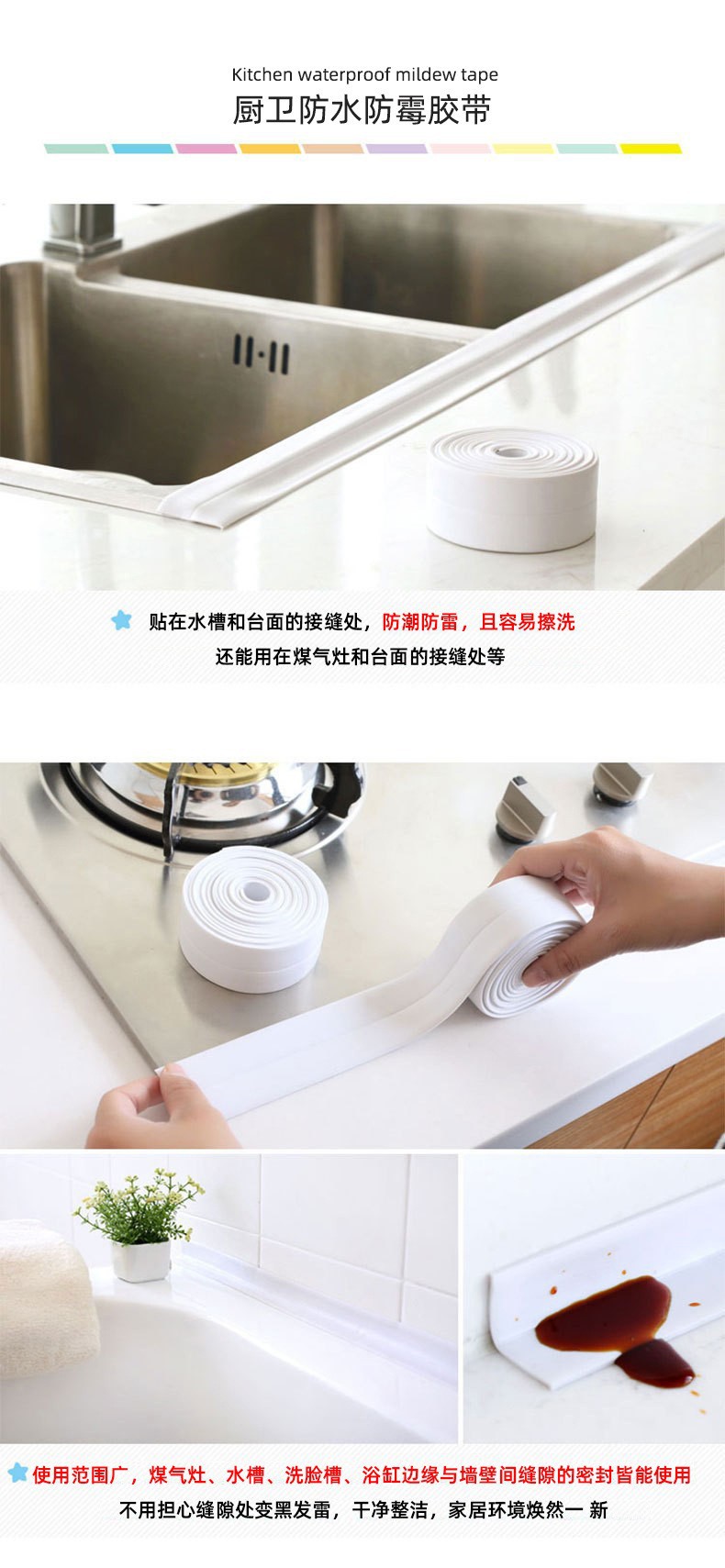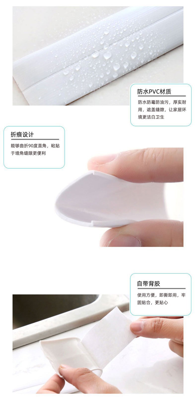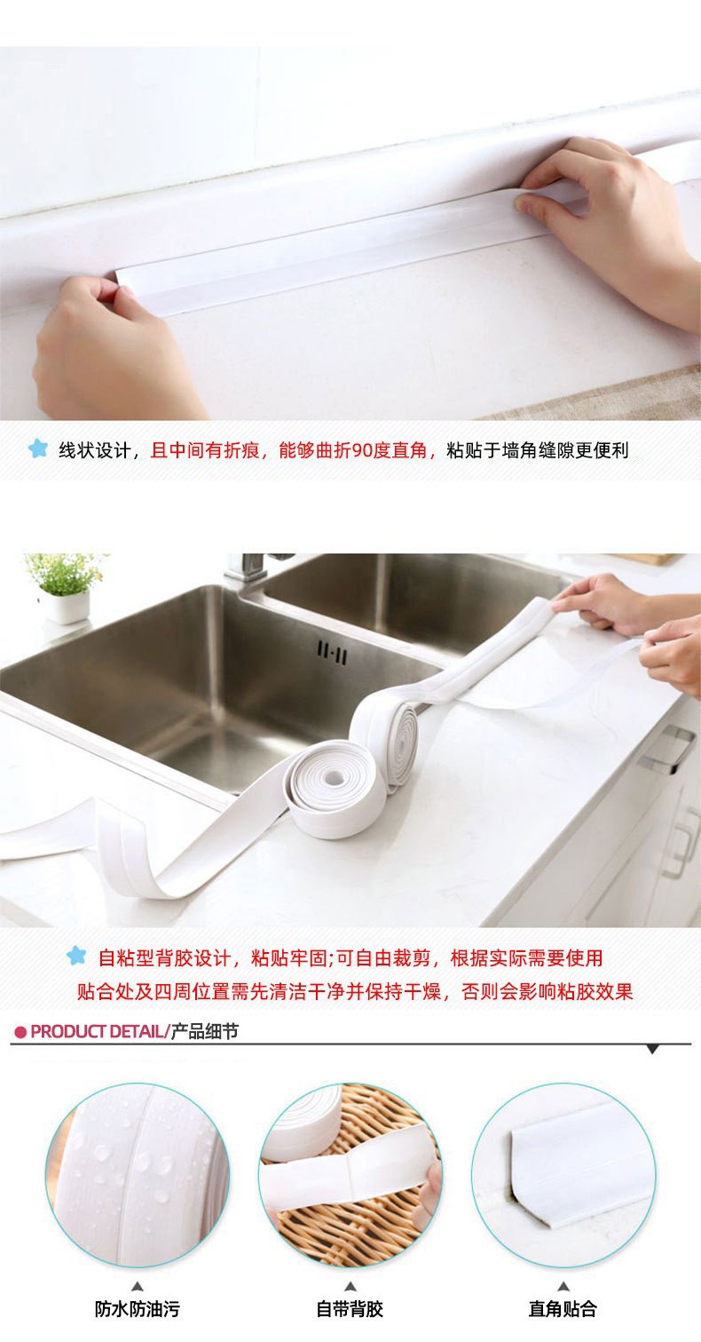 厨卫自粘接缝密封条防水条可剪裁防水防霉贴水槽墙角美缝贴