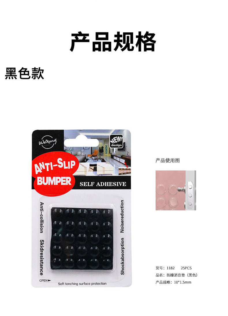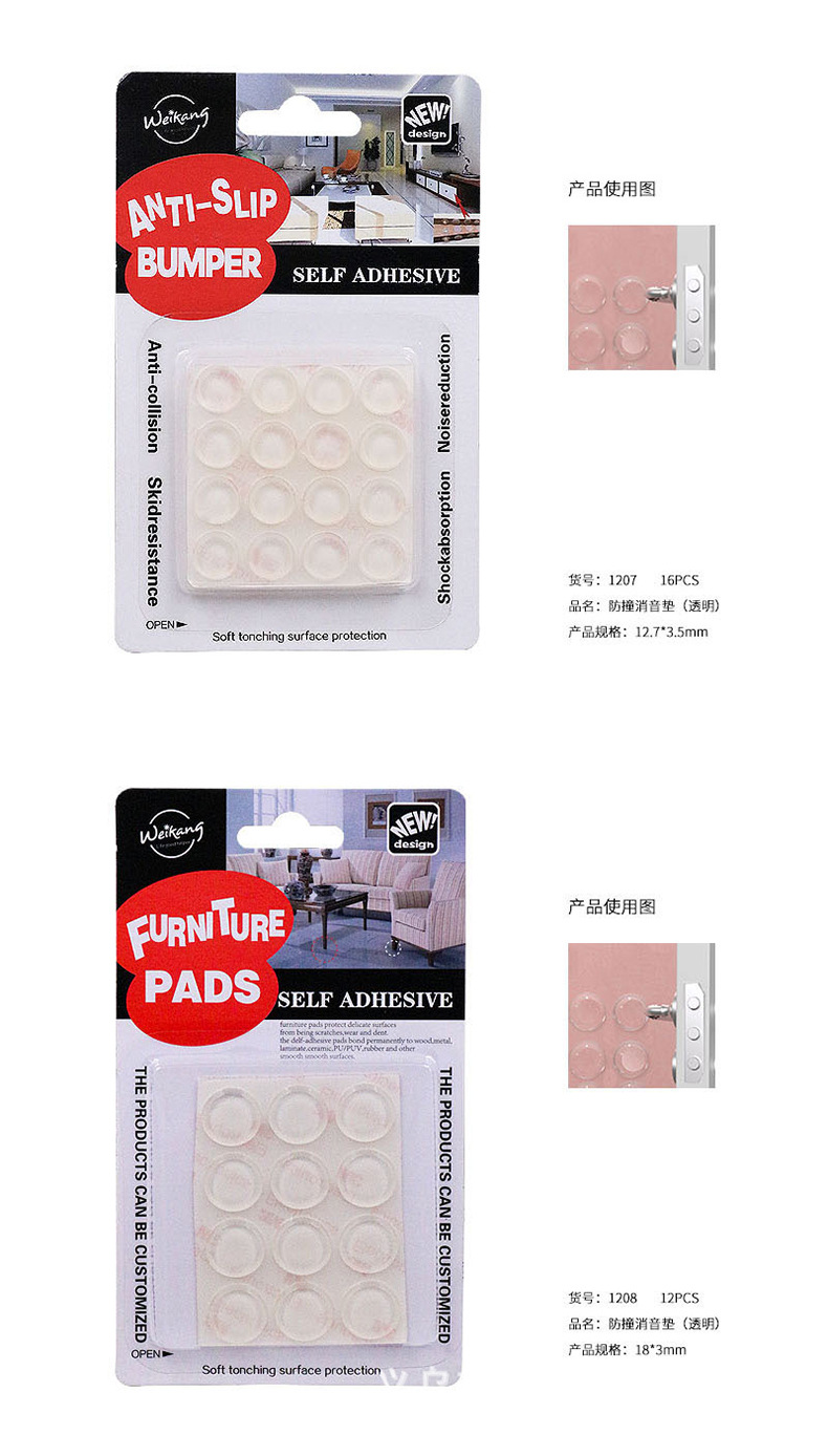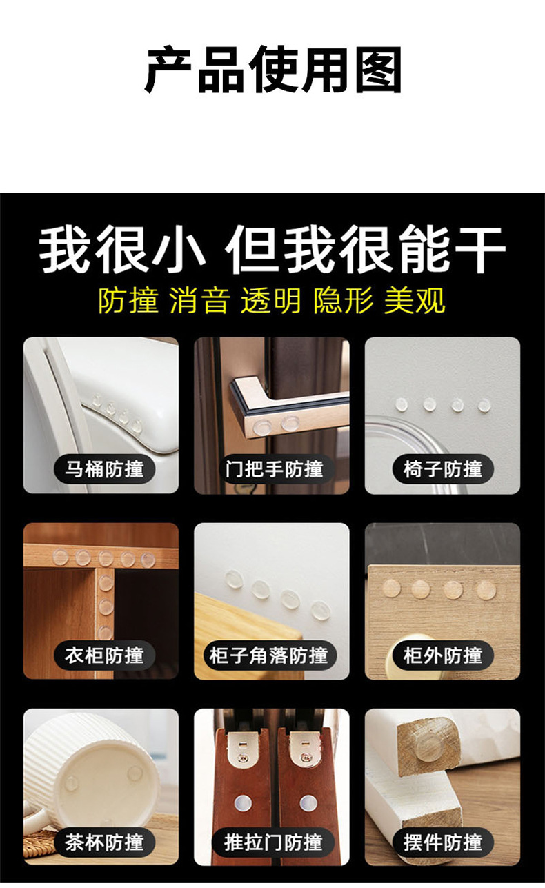 厂家直销防撞透明消音垫黑色柜子衣柜门把手吸卡包装椅子垫外贸商