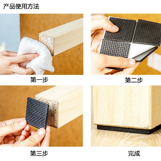 桌椅垫可以稳固的粘于木质,薄板,金属,塑料等家具表面,例如可以牢固的粘附在桌子,衣橱,书橱,展柜,电视柜,办公桌等家具脚的底部,使得家具在地毯,木地板,瓷砖,帆布等光滑地面不易移动,减少与地板的摩擦和噪音。