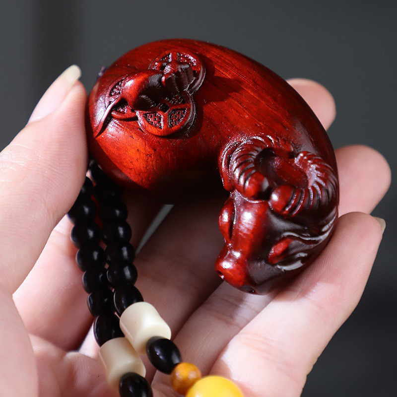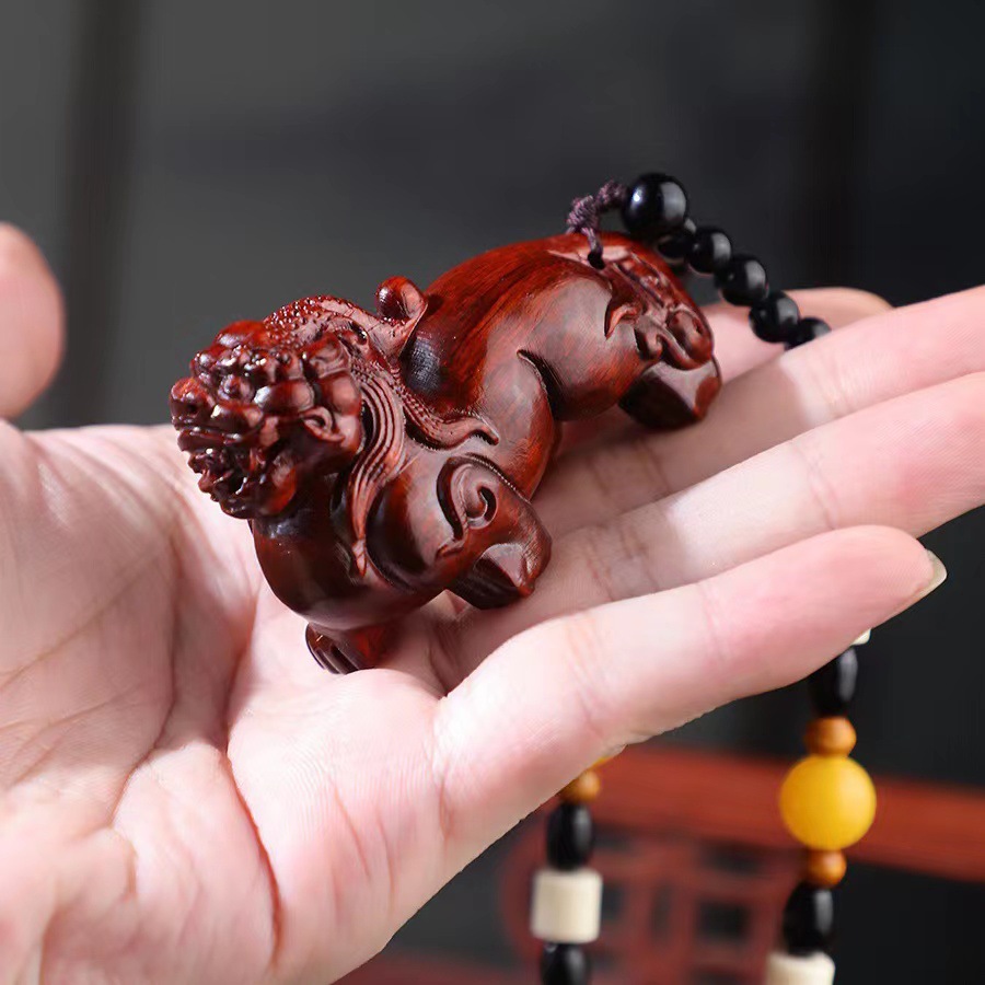 批发紫檀木雕貔貅财神吊坠挂件木质文玩工艺品手把件直播地摊爆款