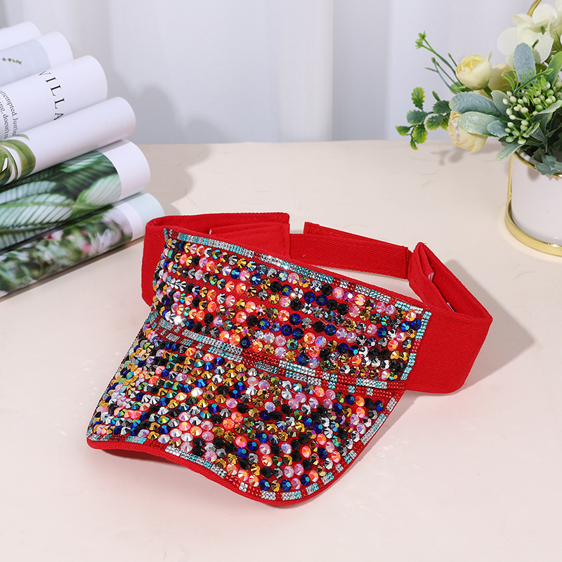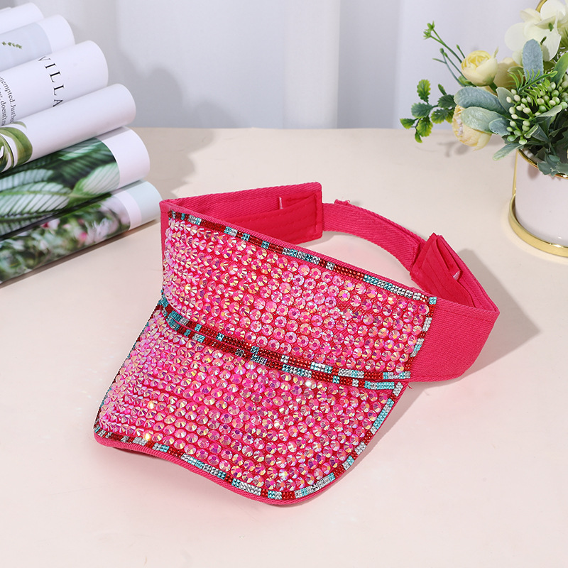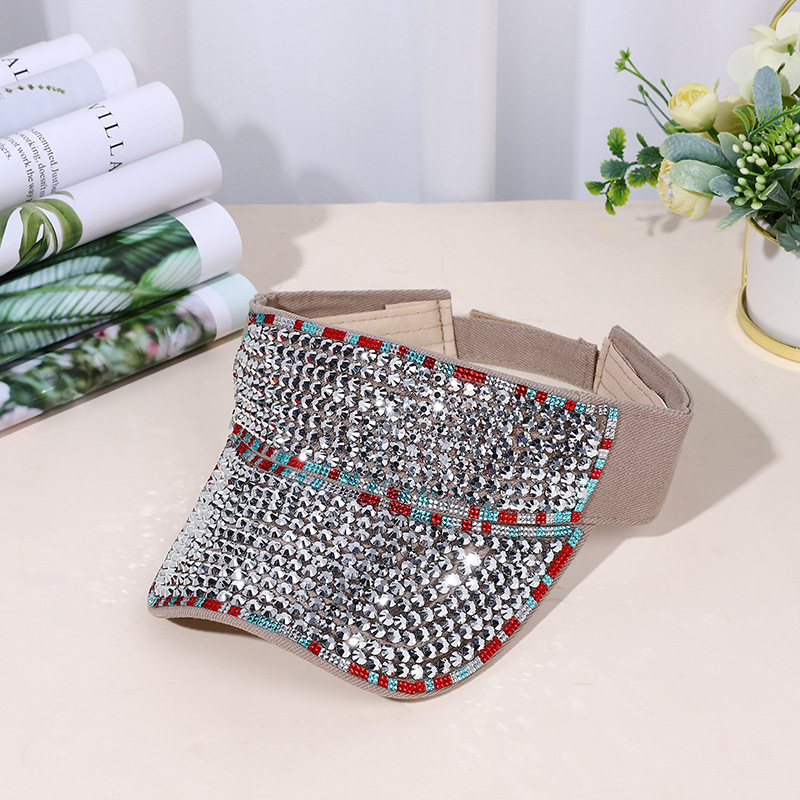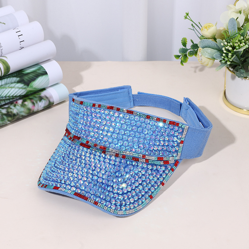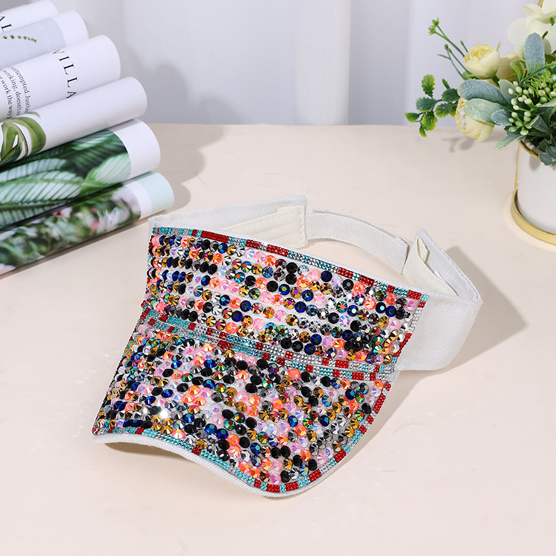 2025新款欧美跨境水钻空顶帽个性夸张满钻无顶遮阳防晒帽厂家直销