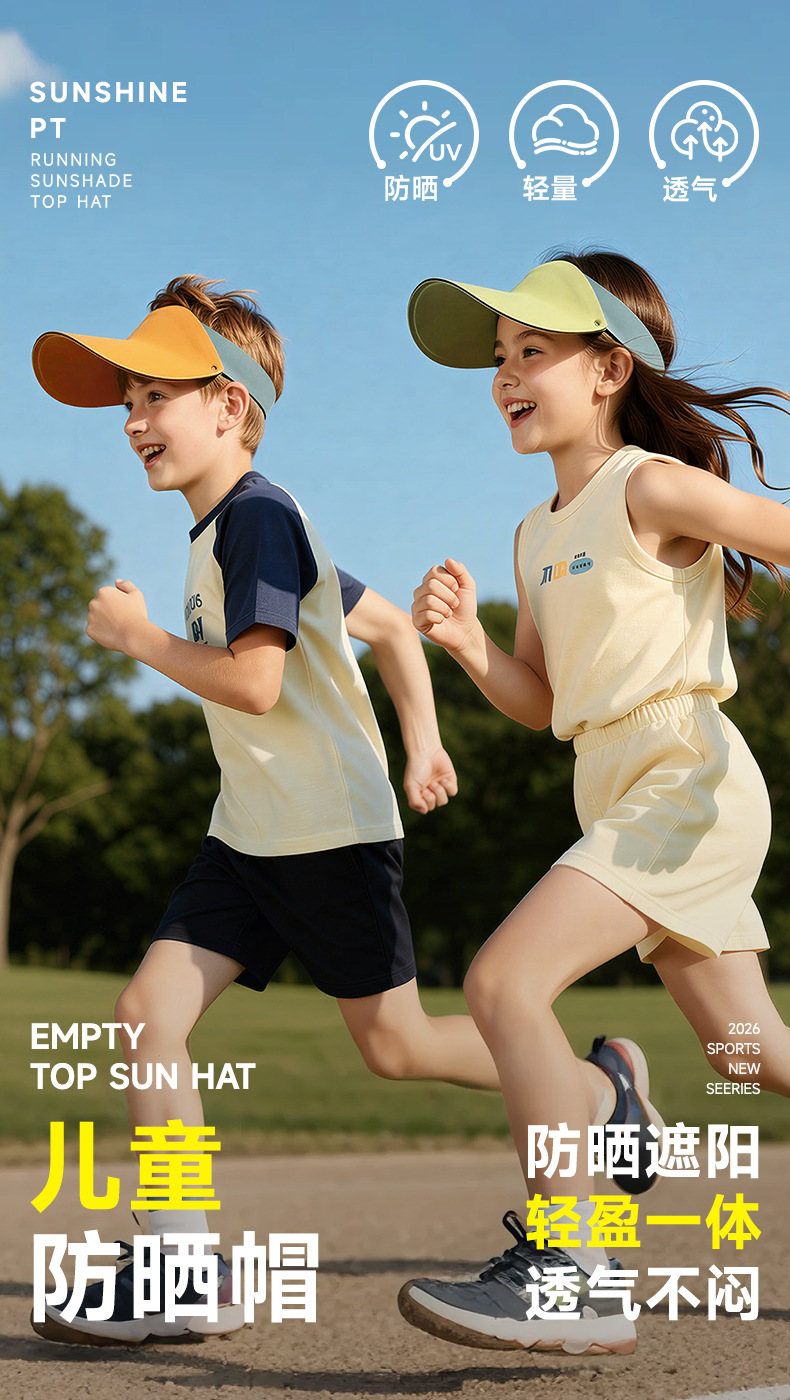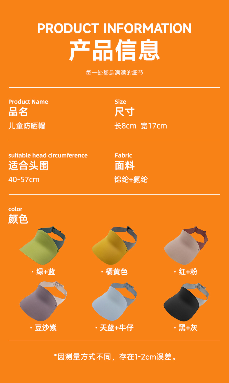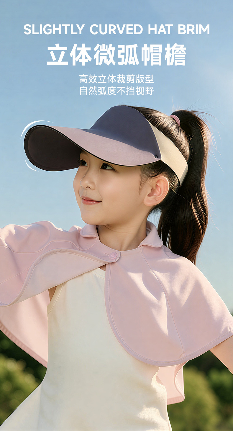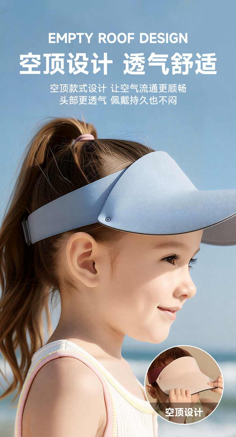 儿童防晒帽子男女孩空顶大帽檐遮阳帽太阳帽防紫外线宽檐防晒