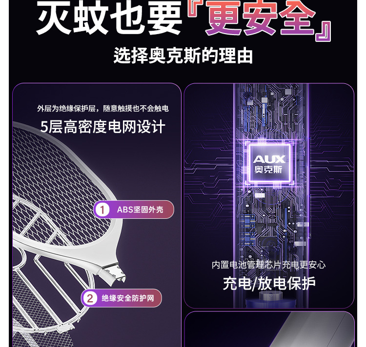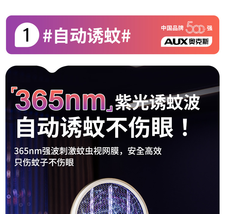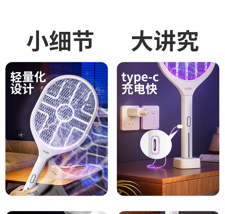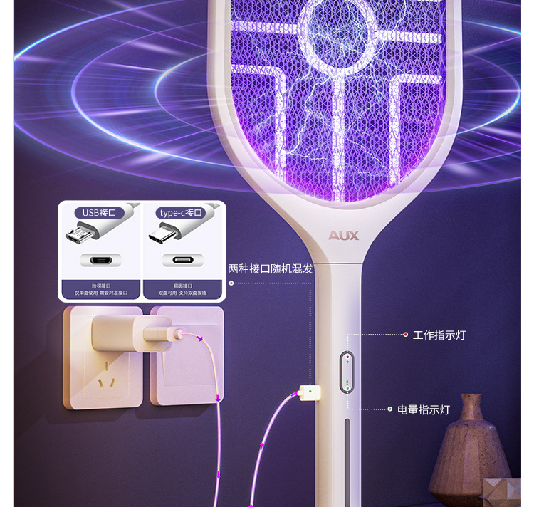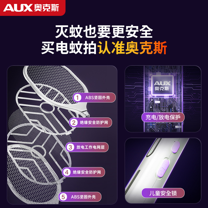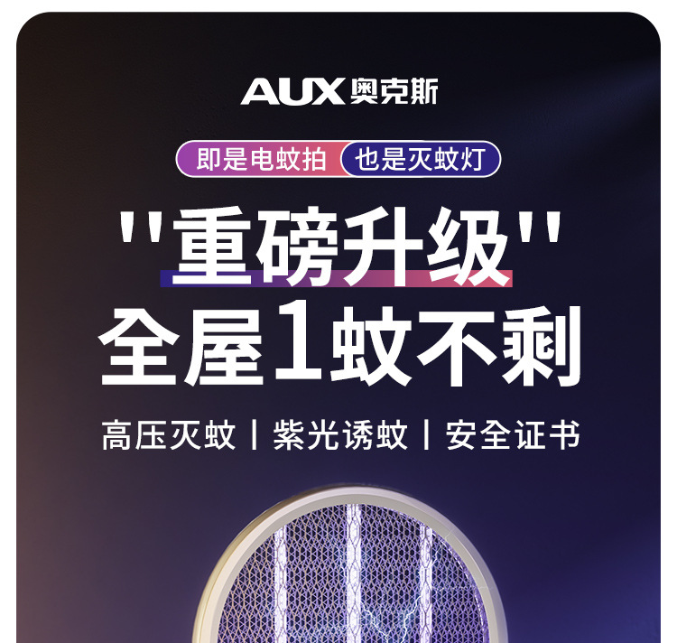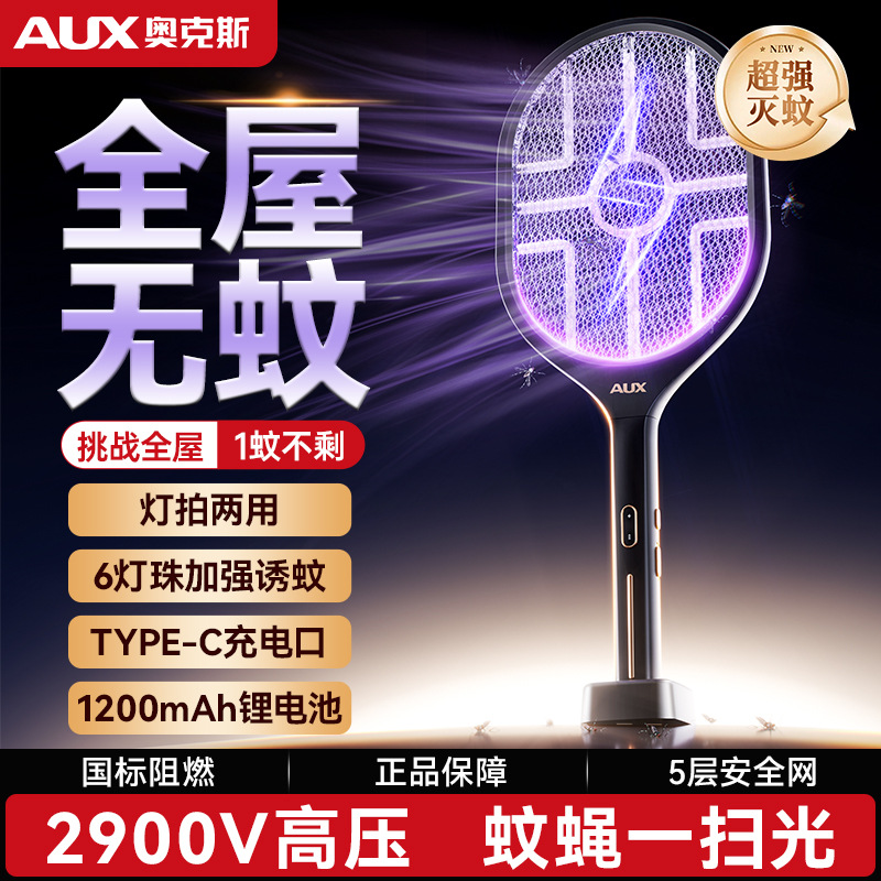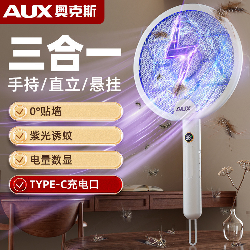 奥克斯电蚊拍充电式家用自动诱蚊灭蚊灯二合一驱蚊器智能数显
