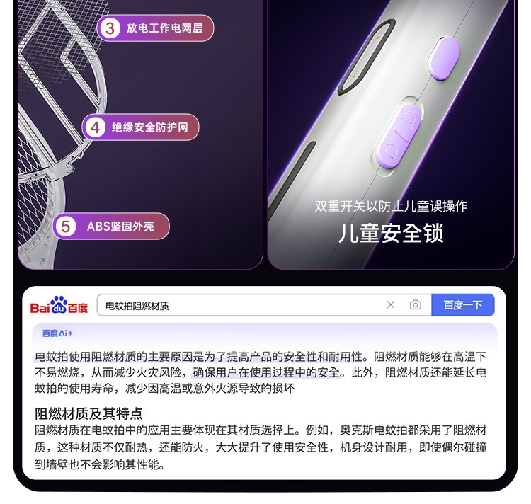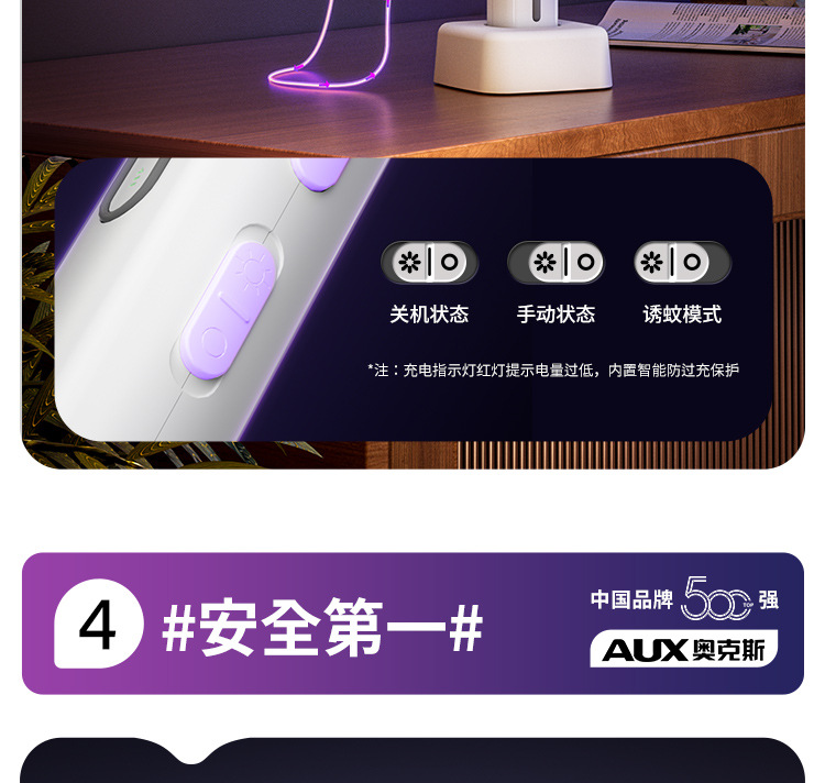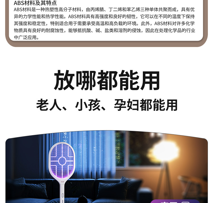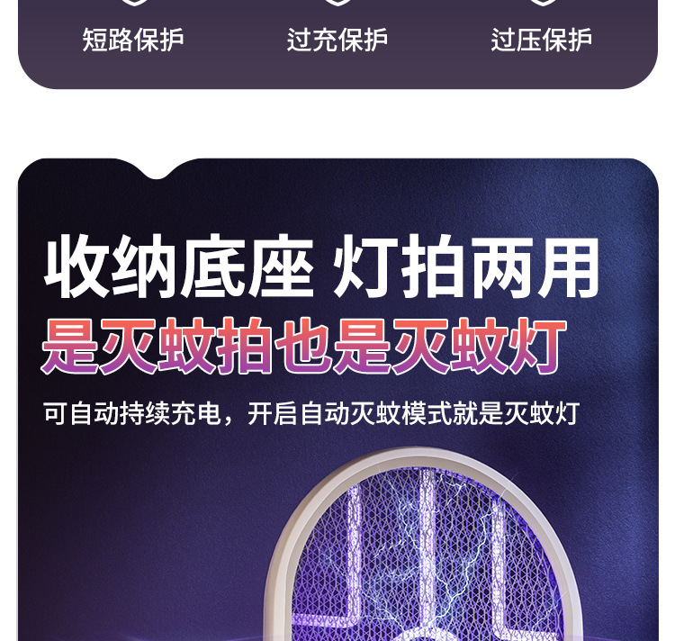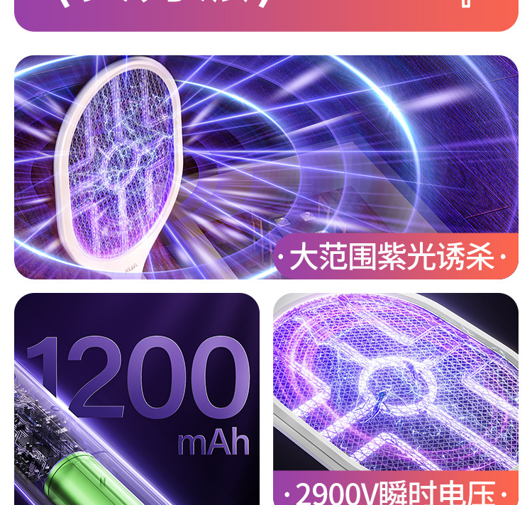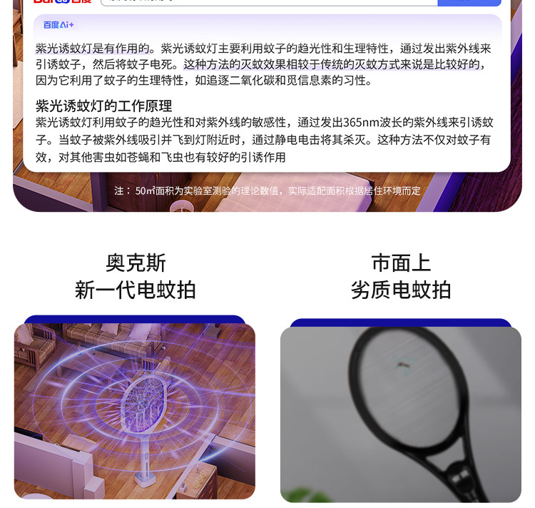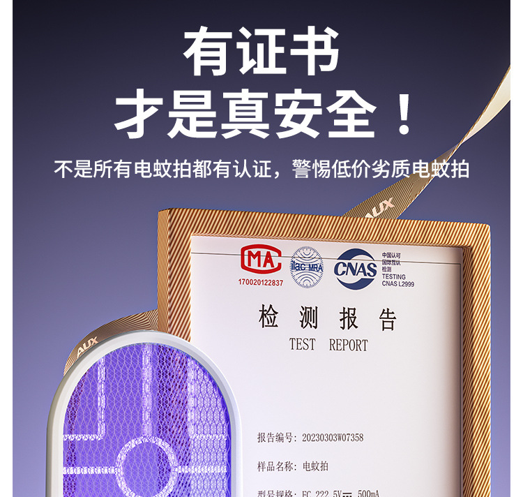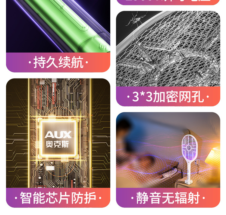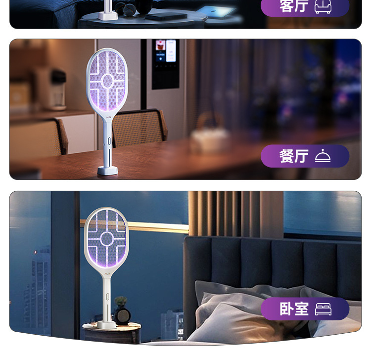 奥克斯电蚊拍充电式家用自动诱蚊灭蚊灯二合一驱蚊器智能数显
