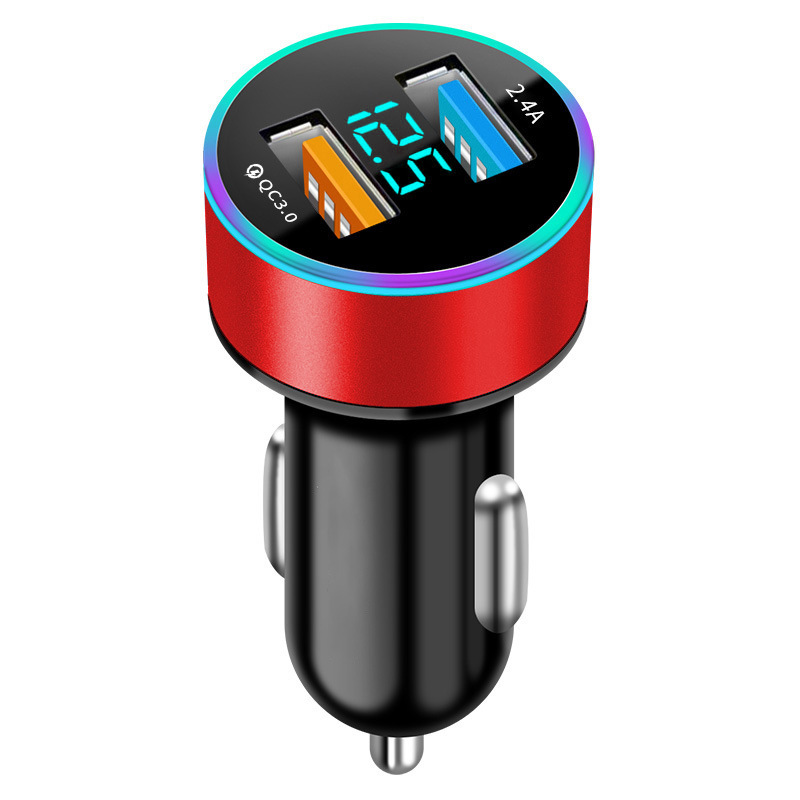 新款铝圈 5V3.1A显示屏车充 铝合金多功能光环数显车载充电器厂家