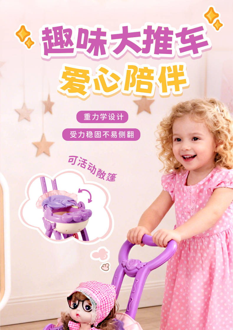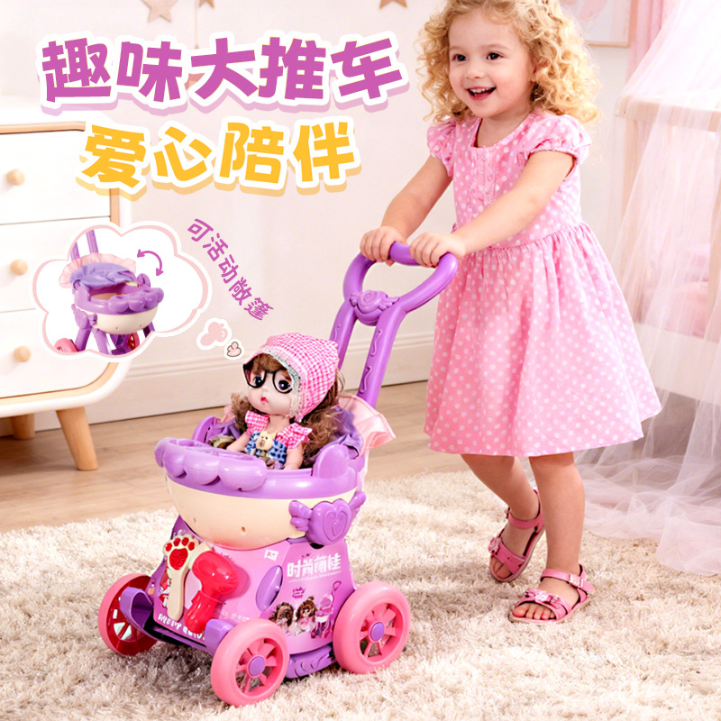 儿童手推车玩具洋娃娃女孩仿真过家家小公主布丁喂食宝宝玩偶批发