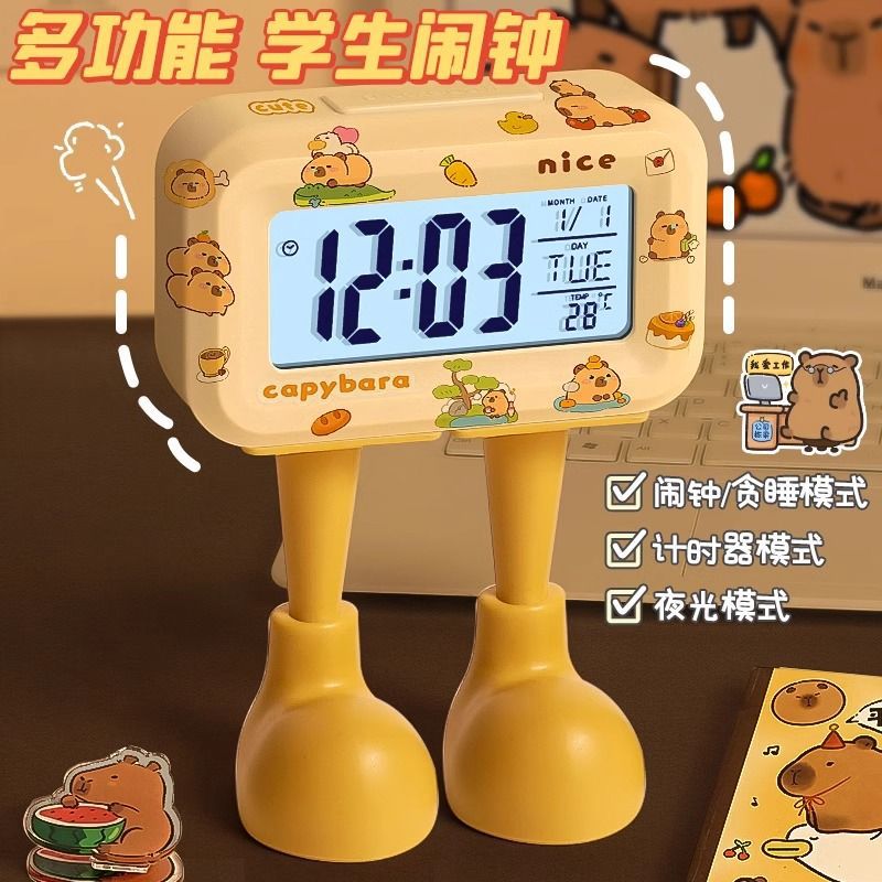 大嘴大脚迷你闹钟可爱时钟闹钟起床电子钟表男女孩起床神器闹钟