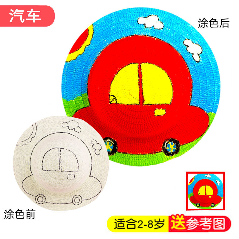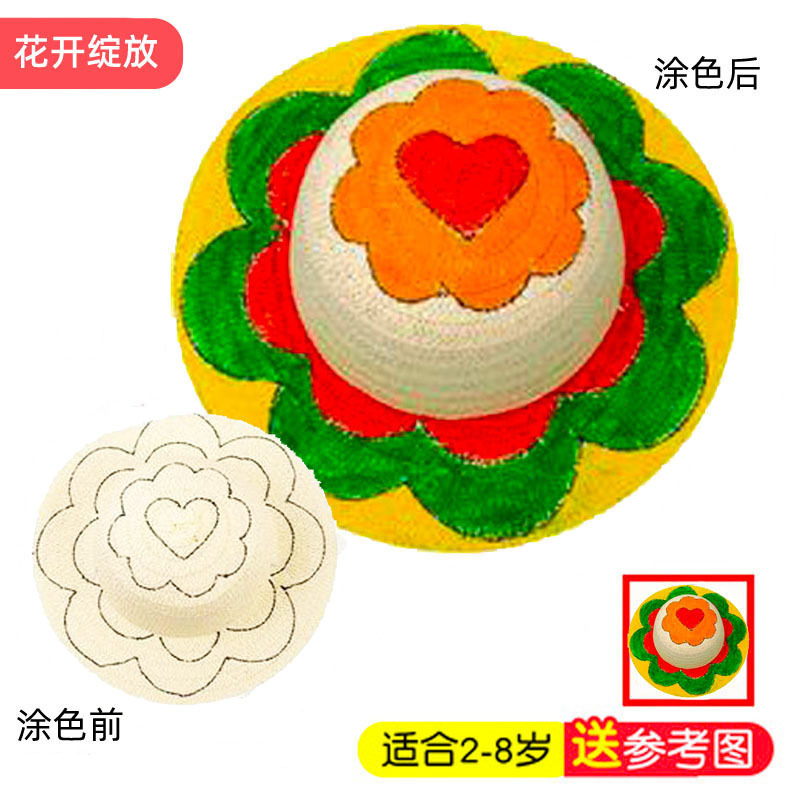 儿童绘画草帽子diy涂鸦空白手绘幼儿园创意手工美术材料学生彩绘
