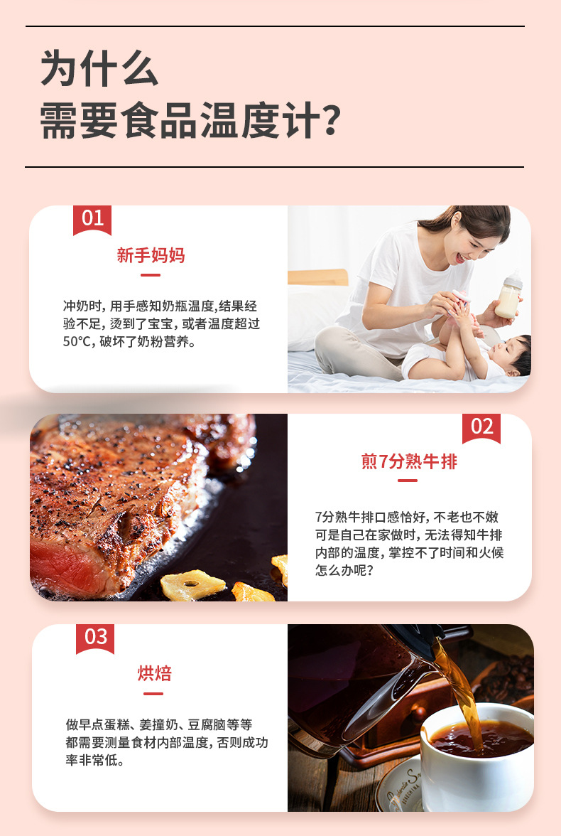 温度计高精度厨房食品电子婴儿奶温油温数显探针式测量计厂家批发