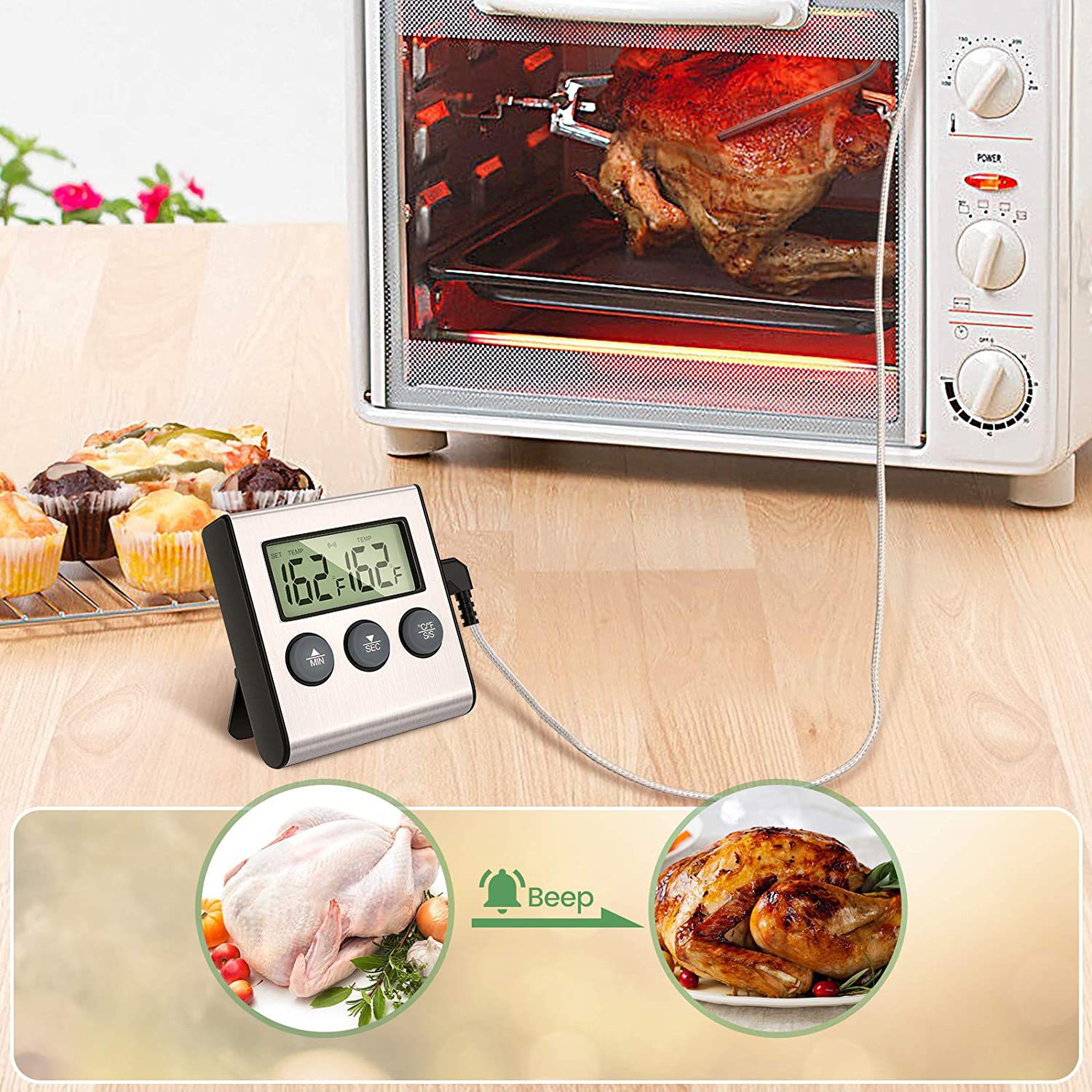 厂家直销电子探针食品温度计不锈钢数显烧烤烘焙BBQ温度计跨境