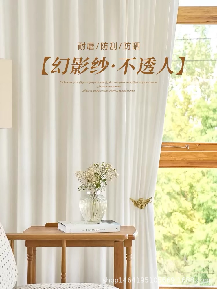 素色提花窗纱 横百叶幻影金刚竖百叶皇冠纱 窗纱白色奶油色 简单