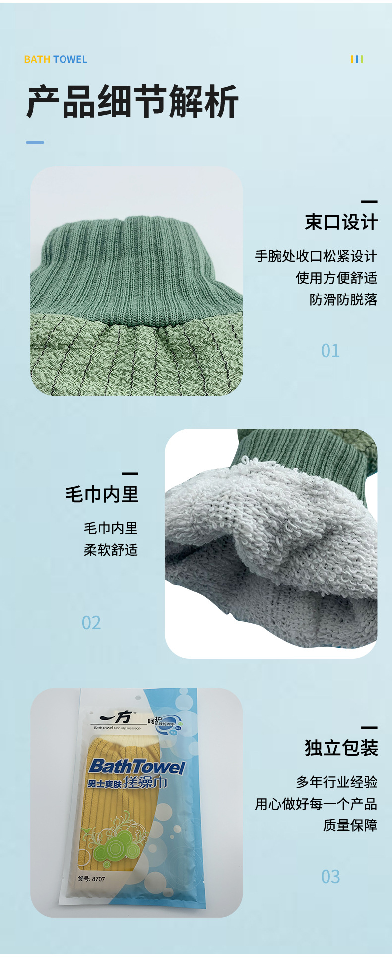 一方搓澡巾男士不疼洗澡巾手套强力粗砂搓泥灰双面家用