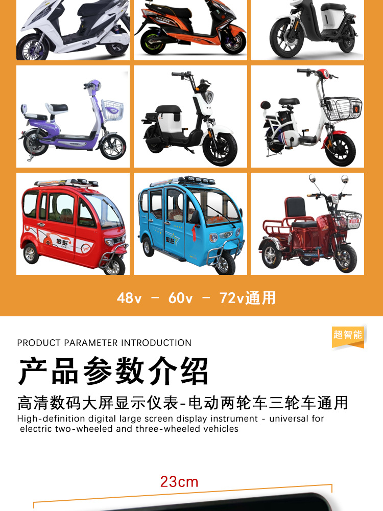 电动车三轮车刀锋仪表总成48v-72v适用于铅酸简易款数码大屏幕