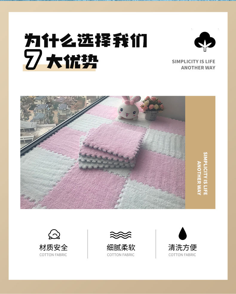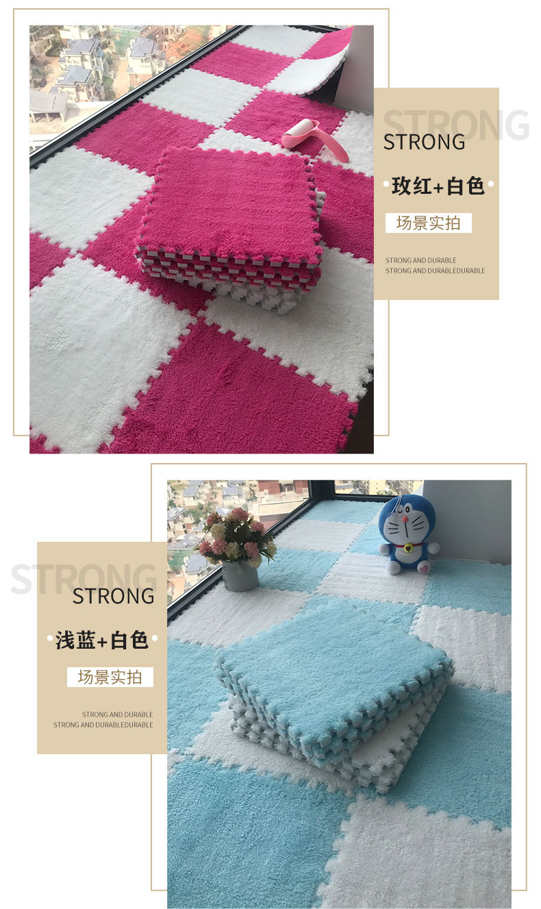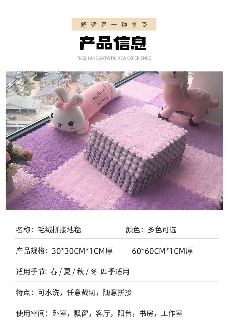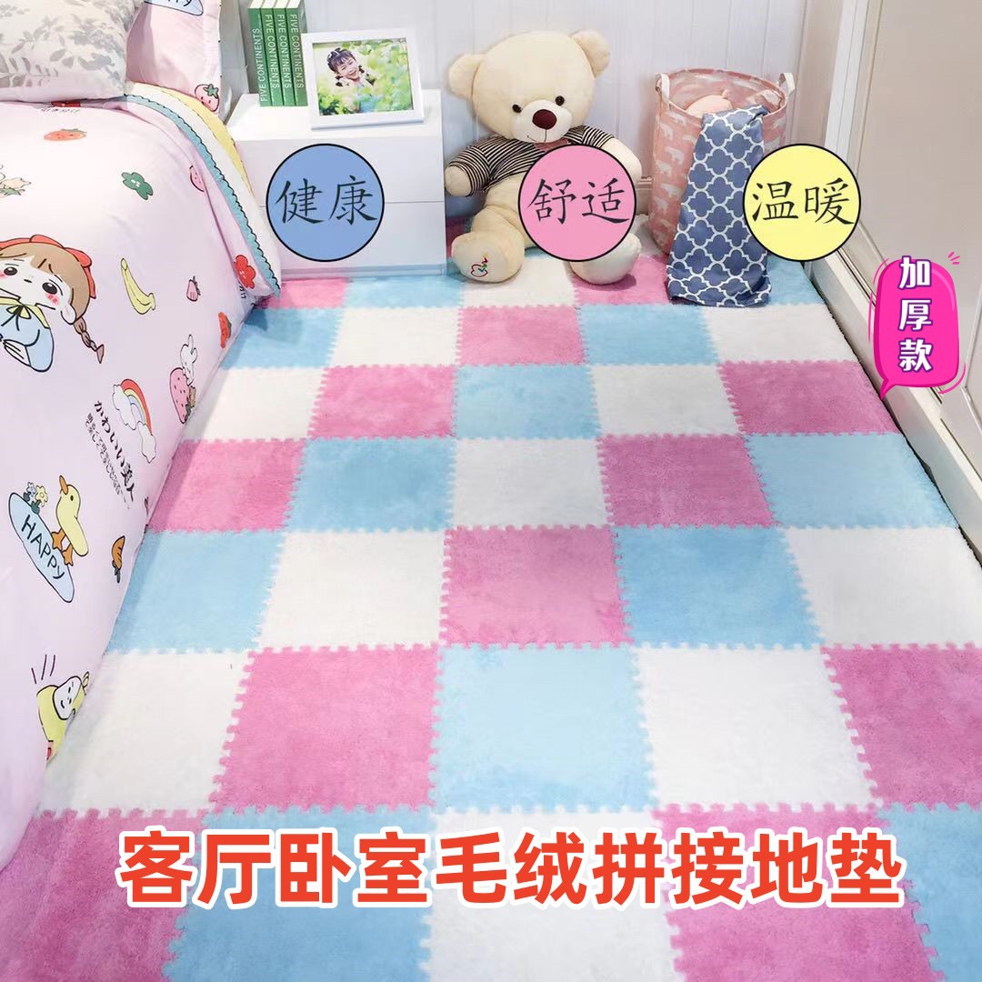 卧室毛绒拼接地垫房间床边满铺加厚款毛绒拼接地毯多颜色自由选择