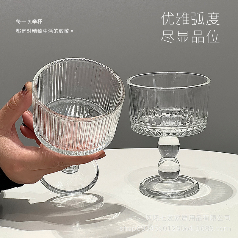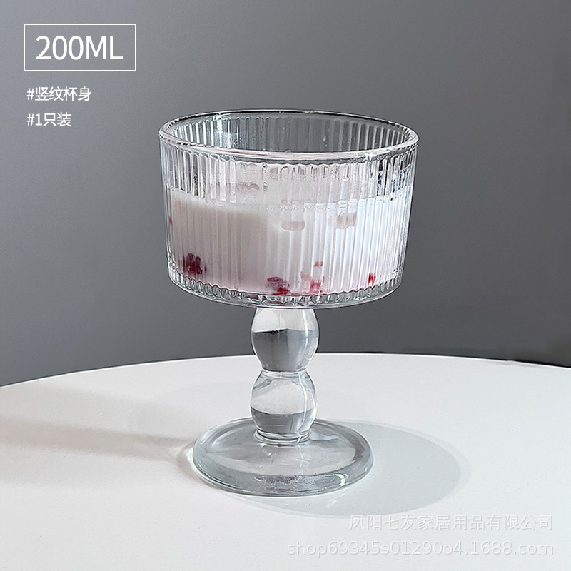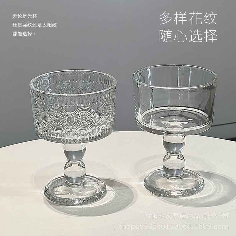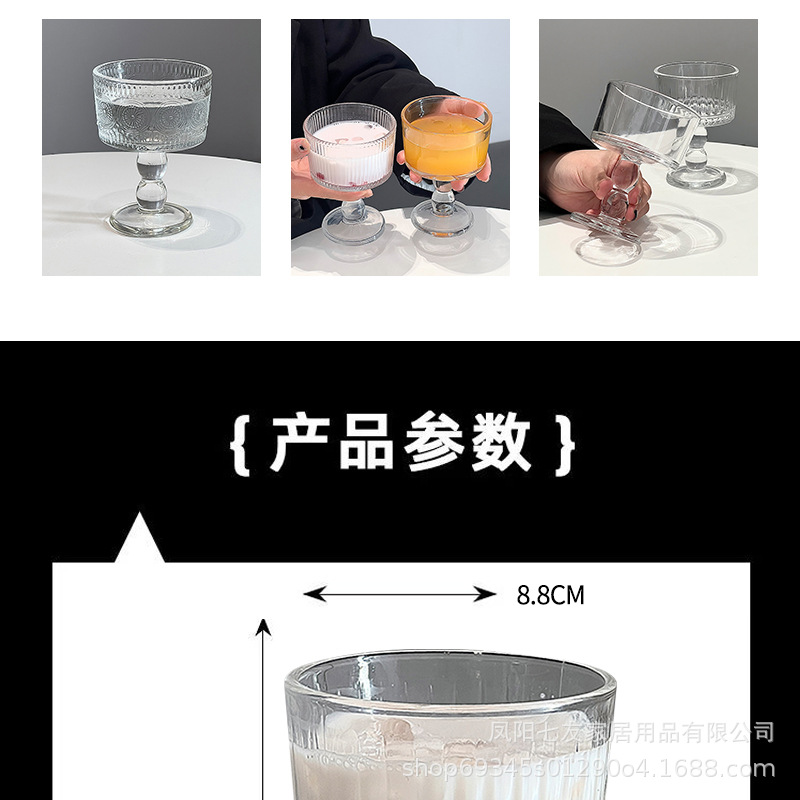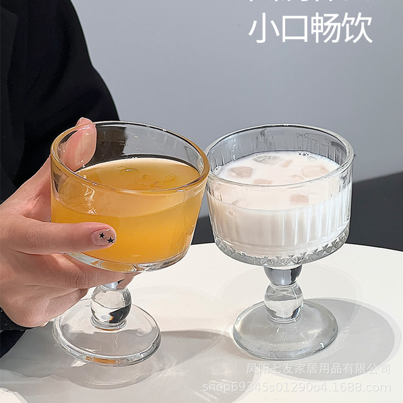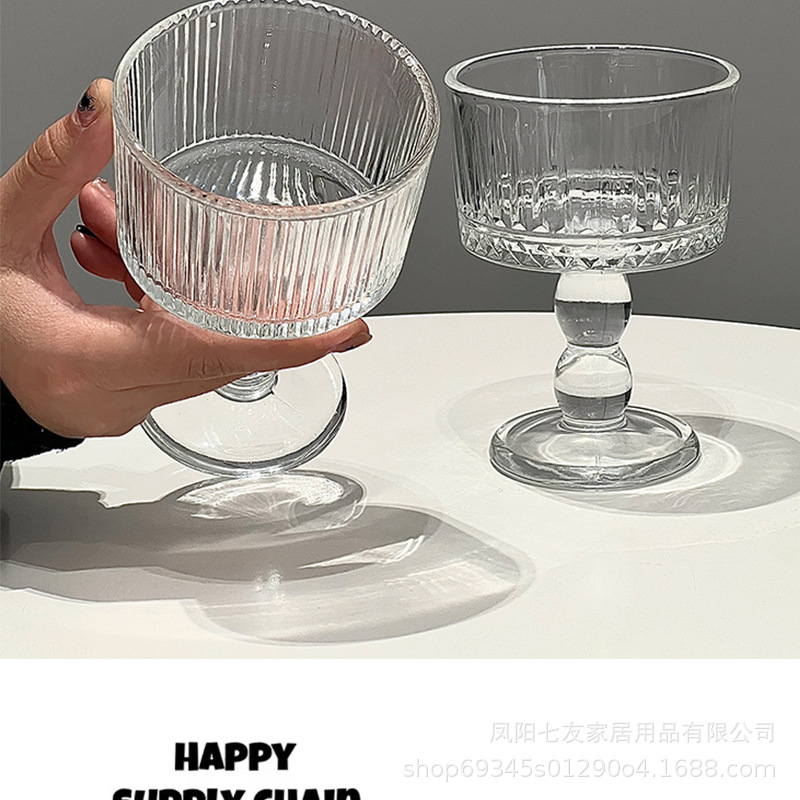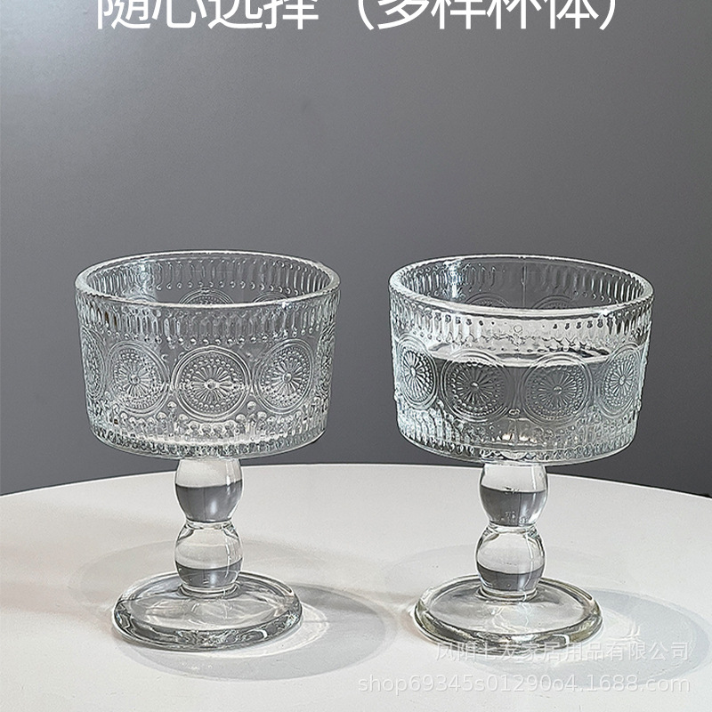 复古中古浮雕冰淇淋杯玻璃高脚甜品杯雪糕碗早餐碗氛围感高脚杯