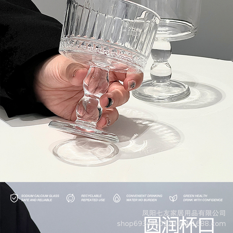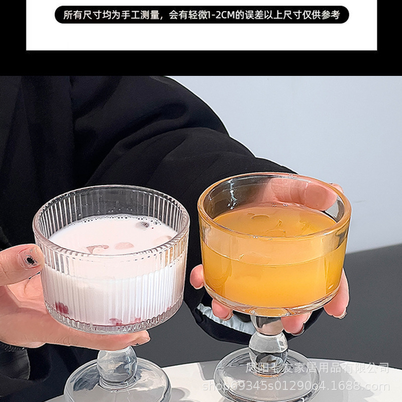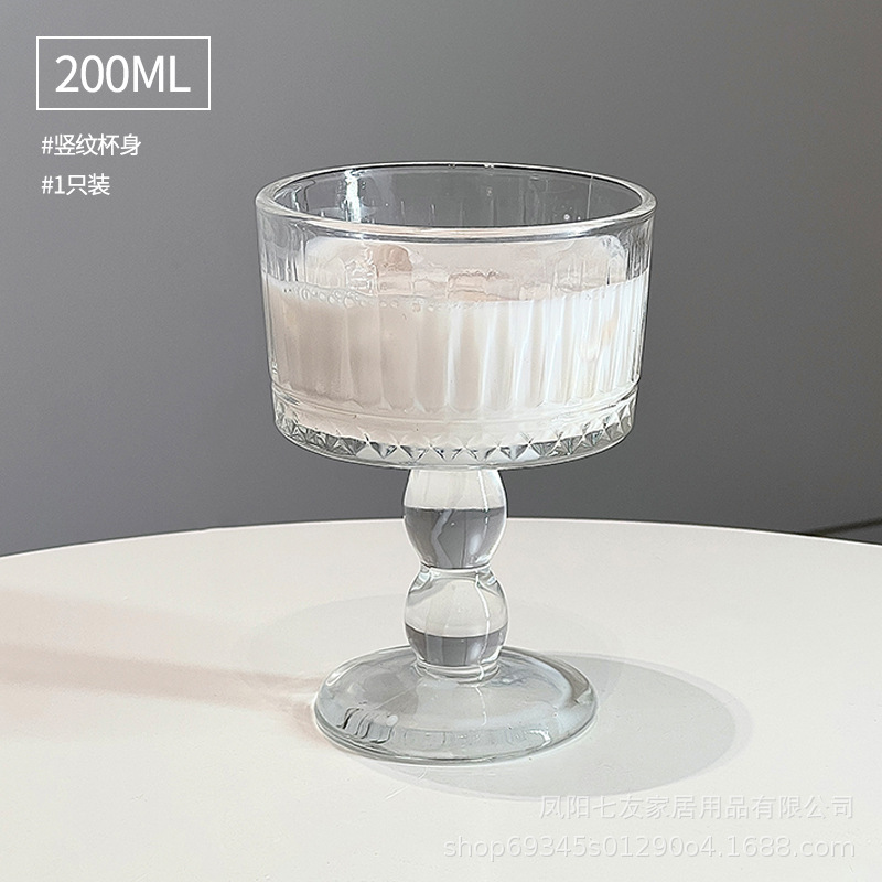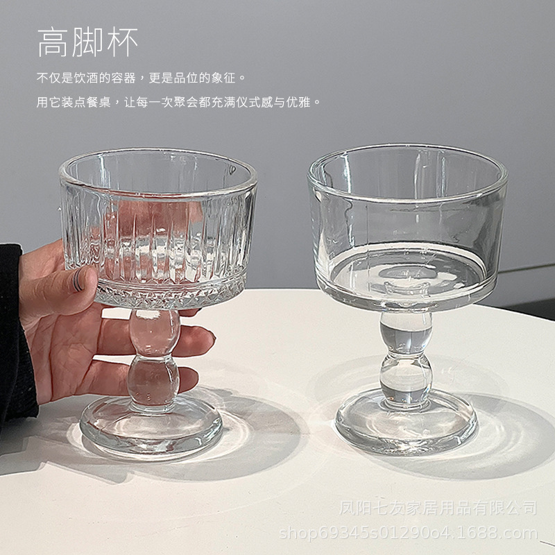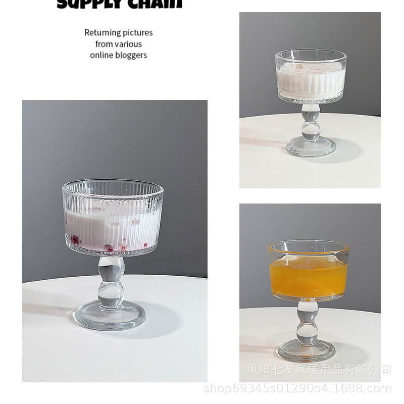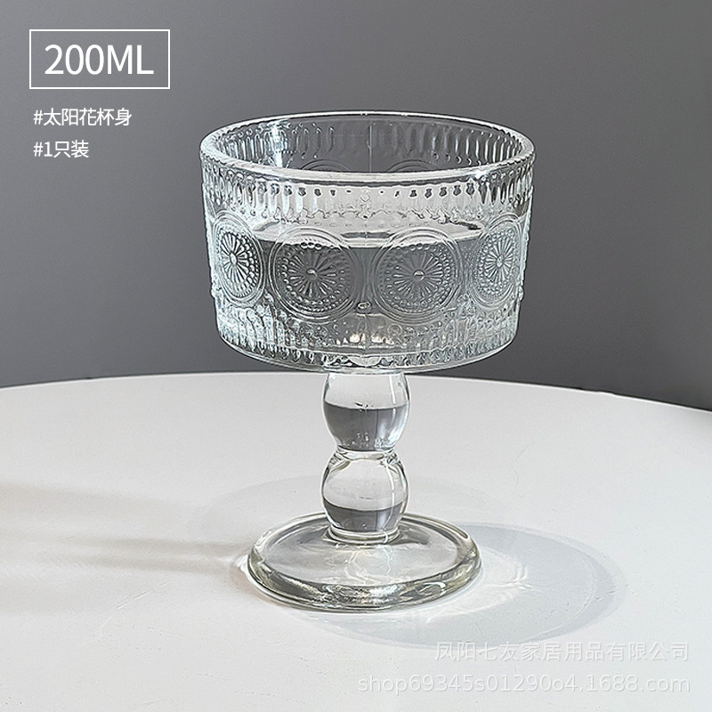 复古中古浮雕冰淇淋杯玻璃高脚甜品杯雪糕碗早餐碗氛围感高脚杯