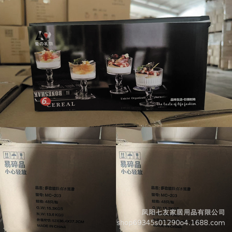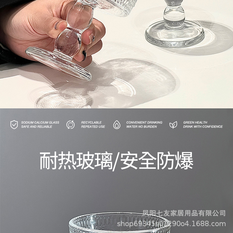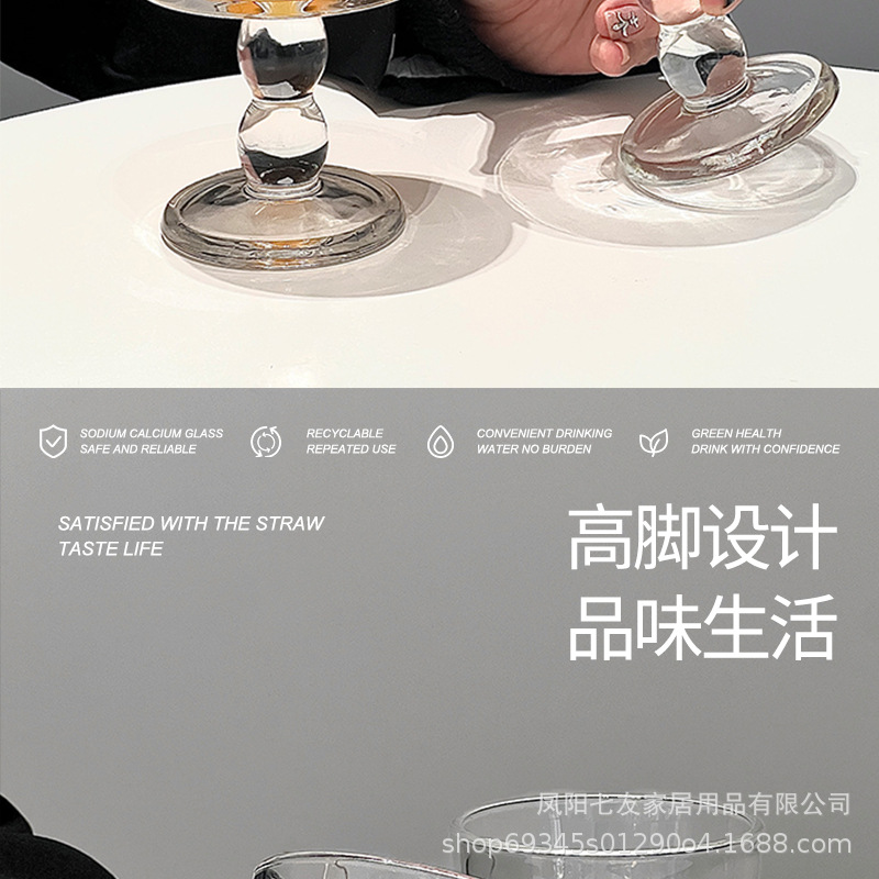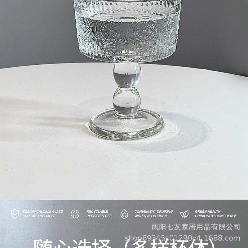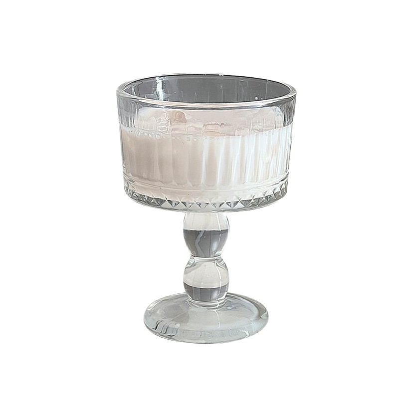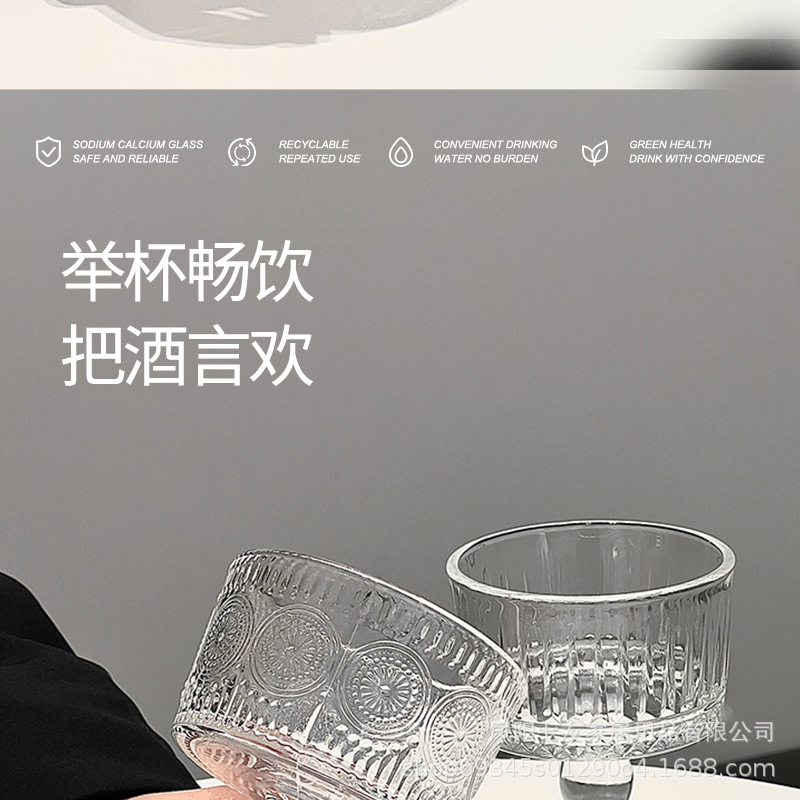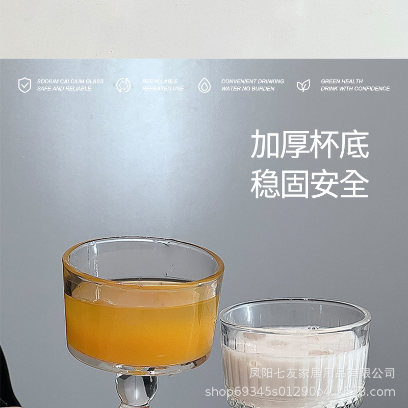 复古中古浮雕冰淇淋杯玻璃高脚甜品杯雪糕碗早餐碗氛围感高脚杯