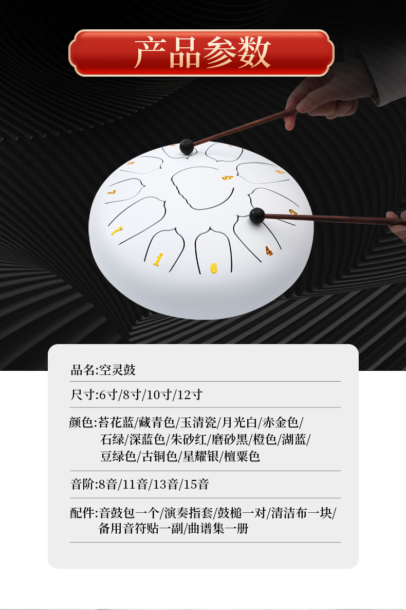 空灵鼓6/6.8/8/10/12/13寸鼓钢舌鼓色空无忧鼓打击器乐手碟静心