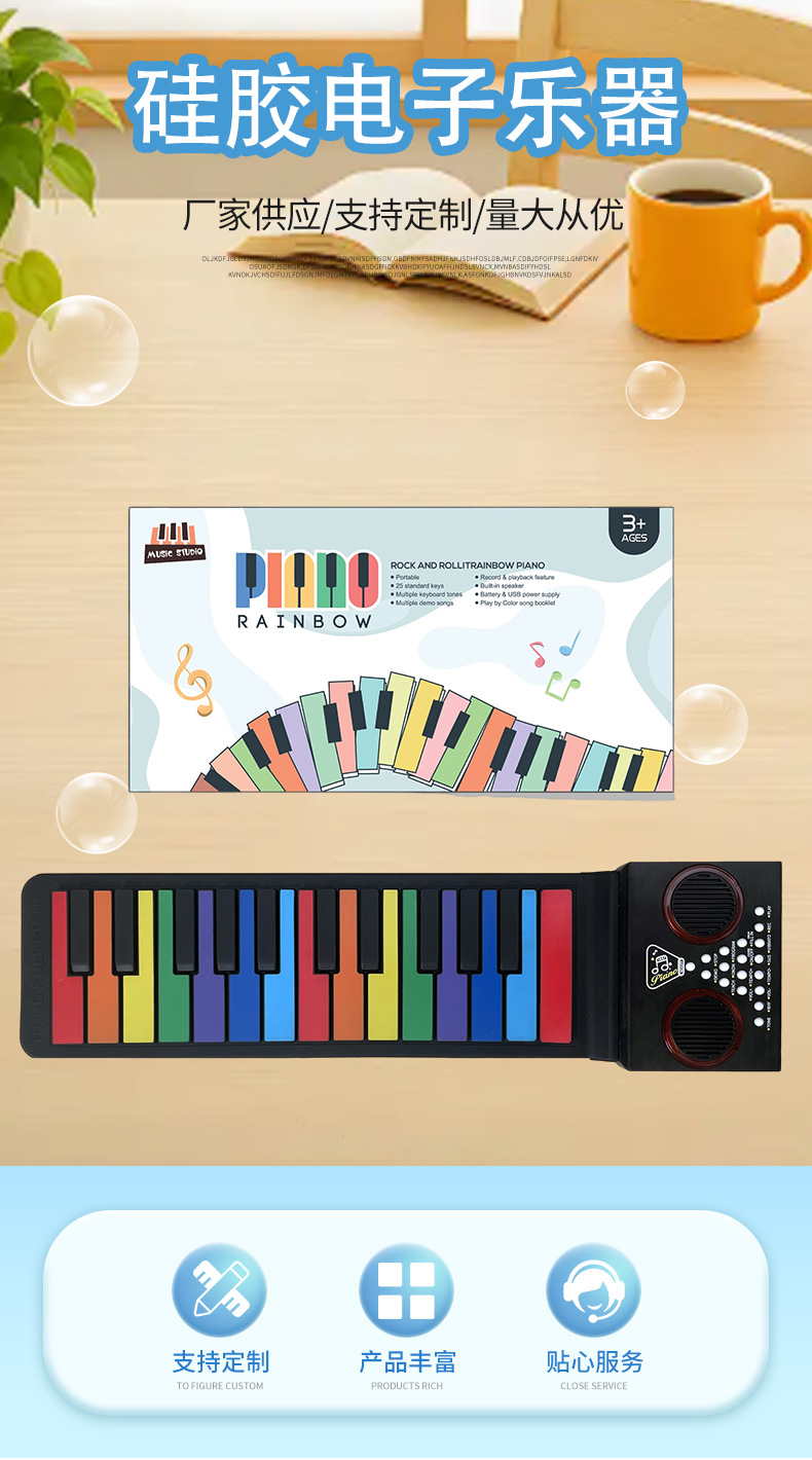 跨境专供便携电子琴49键折叠钢琴手卷钢琴儿童乐器玩具硅胶软钢琴