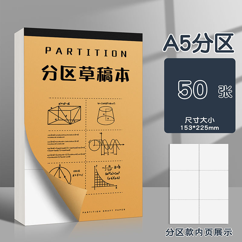 分区草稿纸可撕加厚牛皮学生演算纸数学验算考研专用空白草稿本
