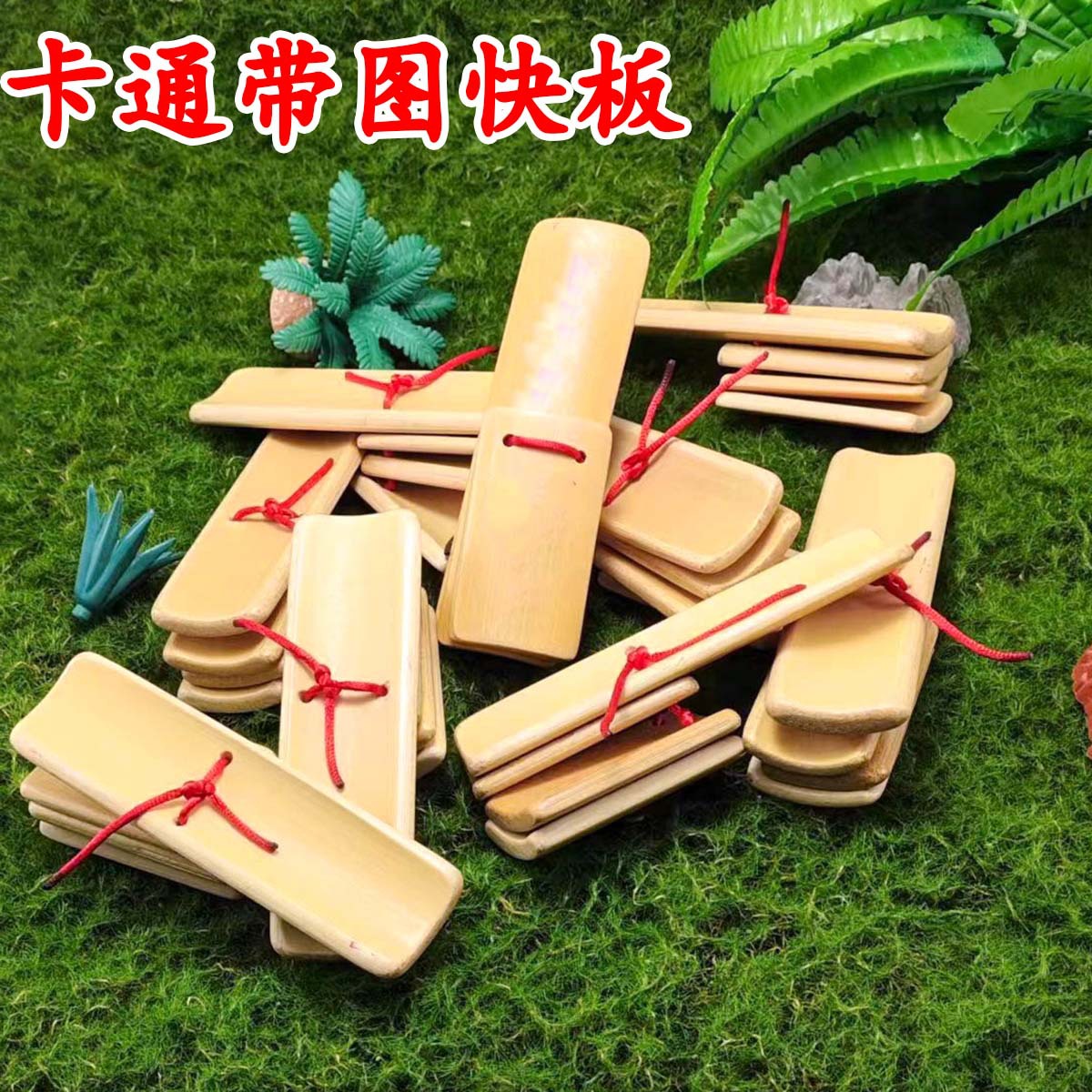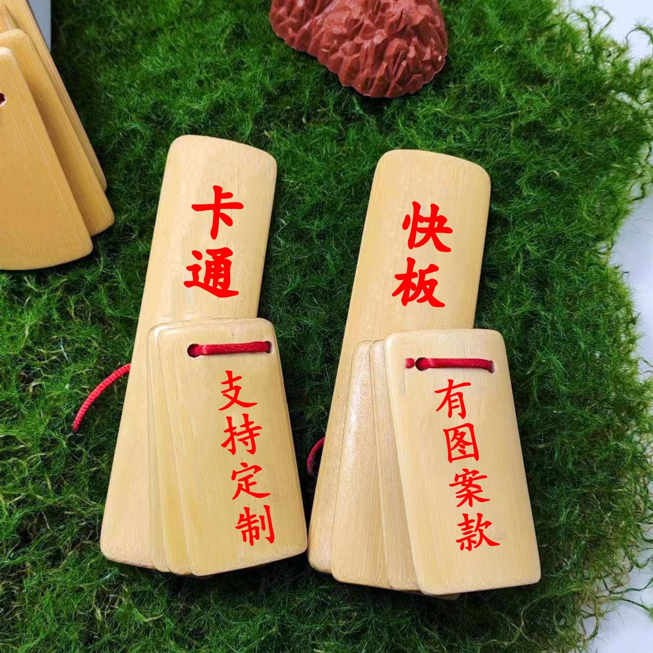 儿童快板天然竹木小快板卡通竹板响板小四片白板相声才艺可印LOGO