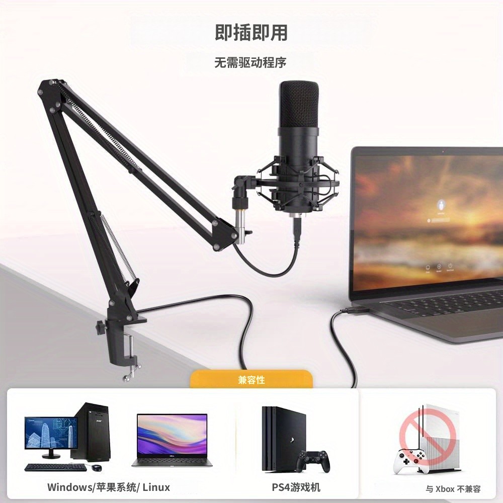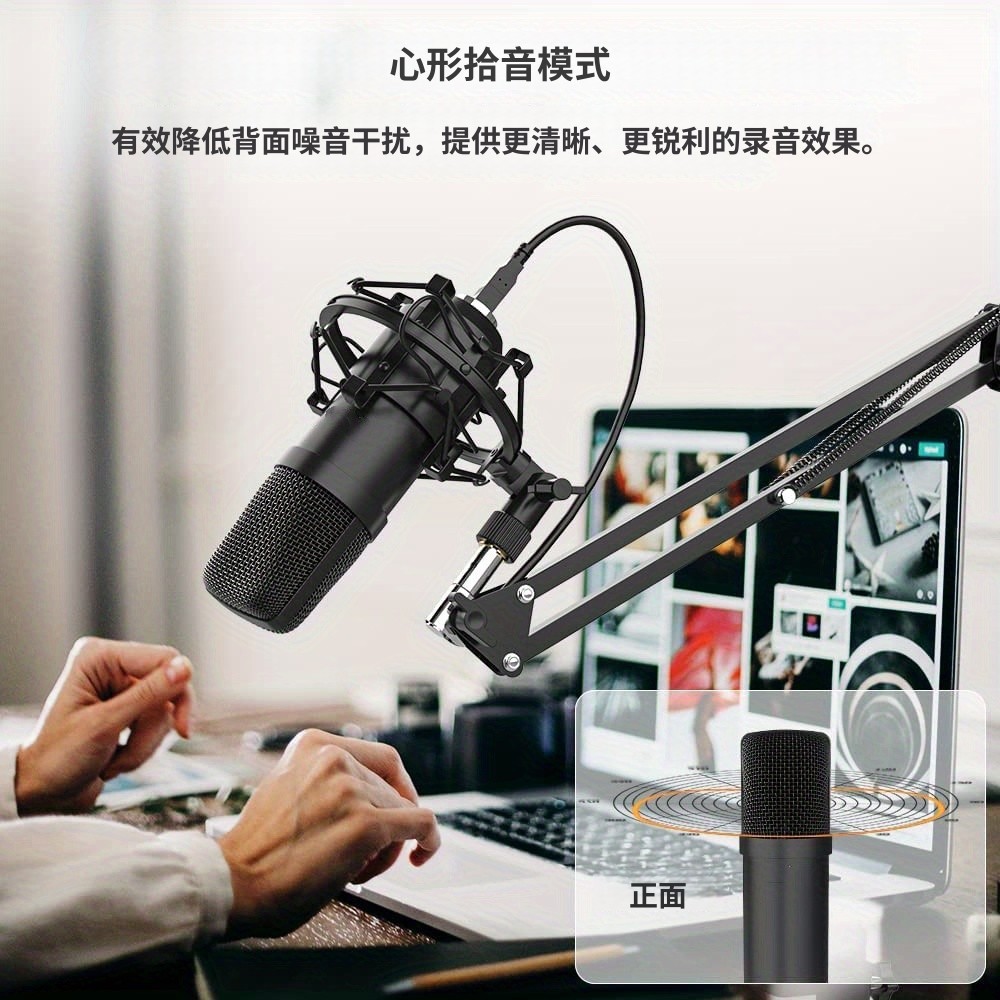 跨境爆款 USB插口BM700电容麦克风套装含悬臂支架bm700话筒黑色