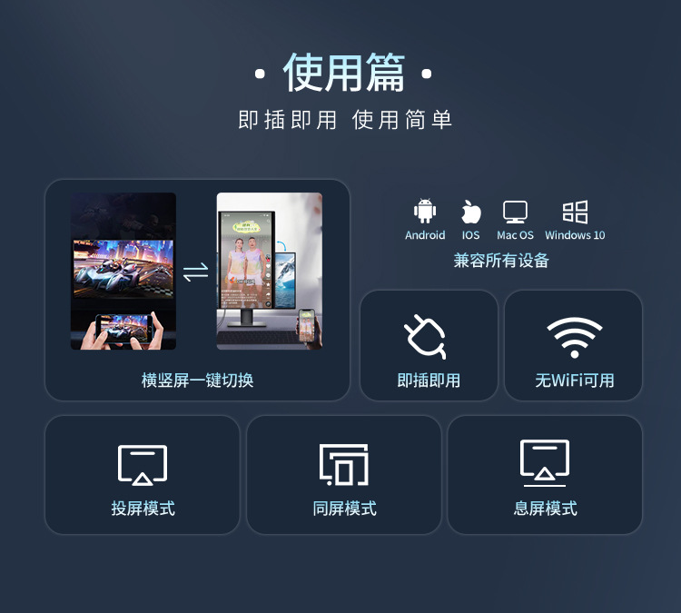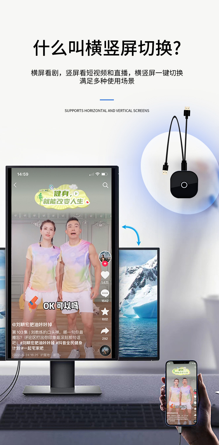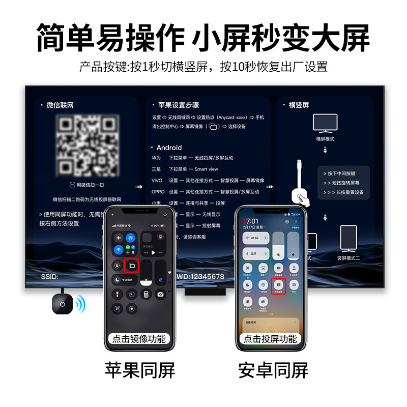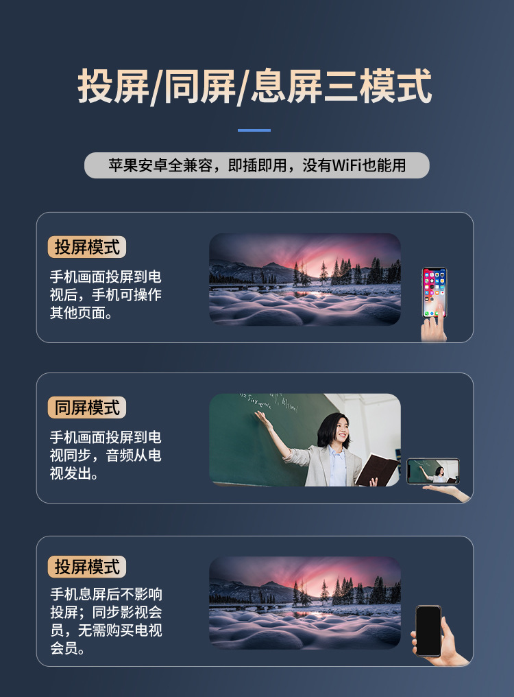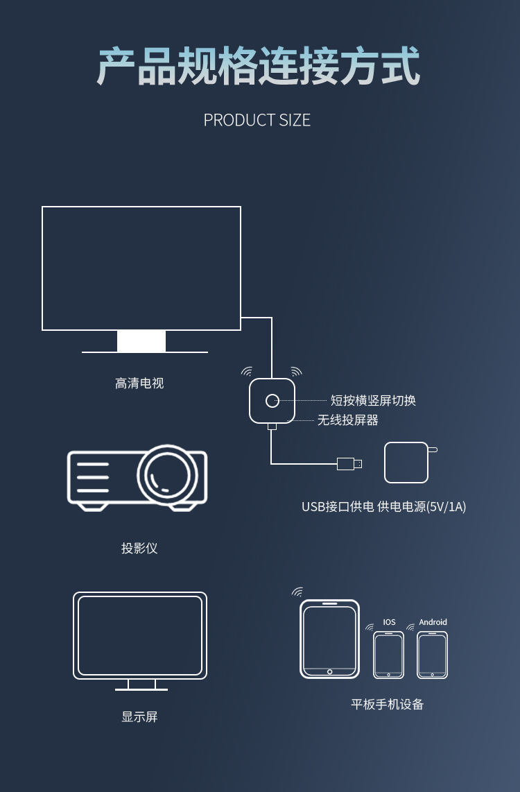 无线投屏器新款手机同屏器连电视hdmi转电脑显示器中英文跨境专供