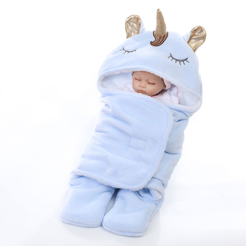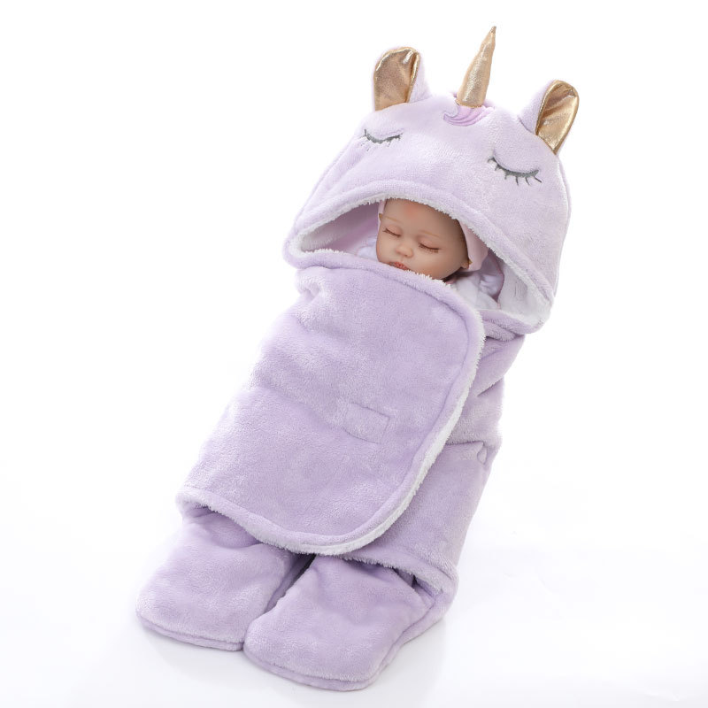 跨境外贸新款抱被冬季双层法兰绒独角兽抱毯加厚婴儿襁褓定制代发