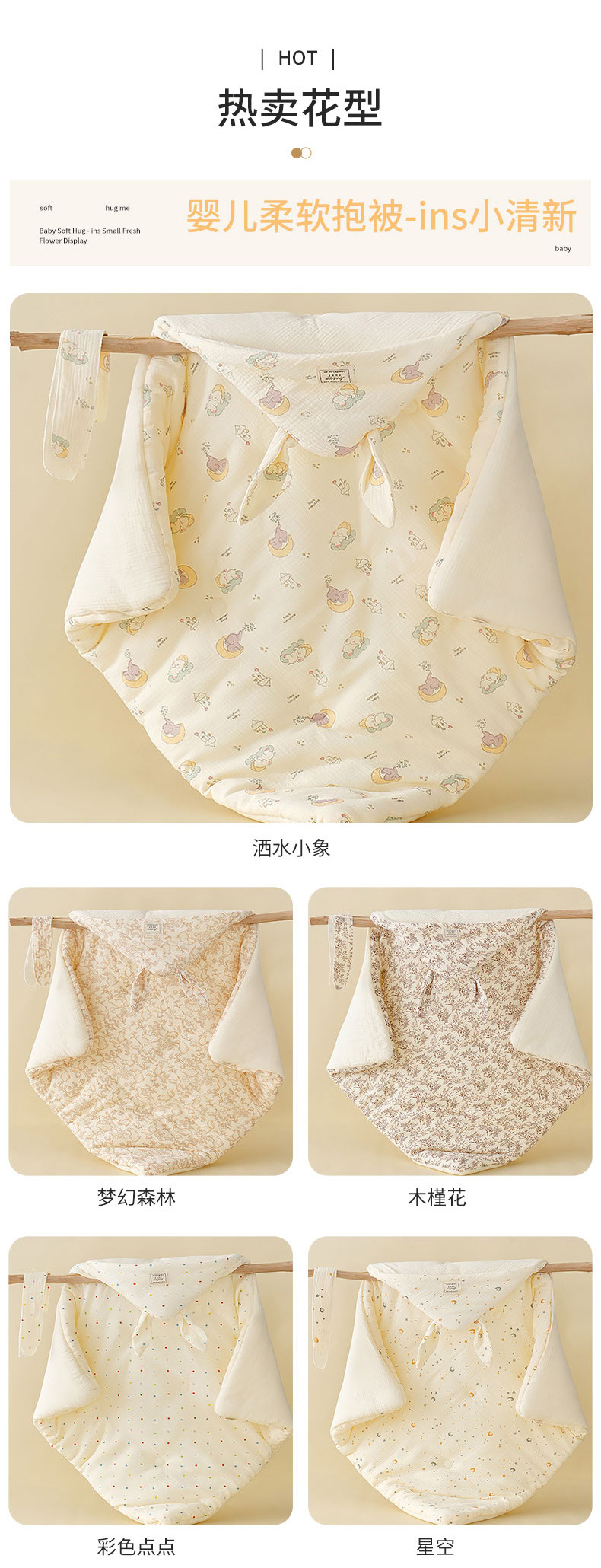 空气褶皱纱抱被纯棉纱布a类加厚包被宝宝产房襁褓外出包裹婴儿