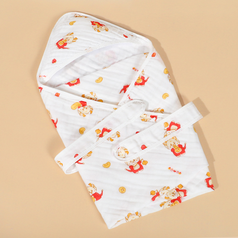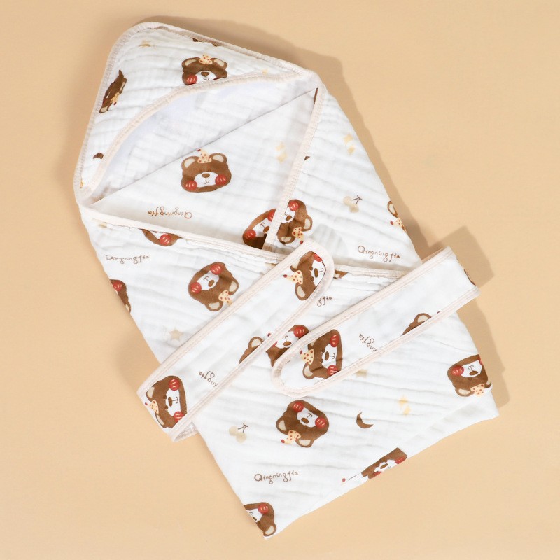 纯棉纱布抱被春夏全棉初生婴儿包被宝宝用品浴巾连帽新生儿 包被