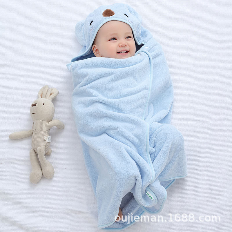 儿童珊瑚绒浴巾斗篷披风可穿吸水带帽连帽婴幼儿宝宝抱被超柔软