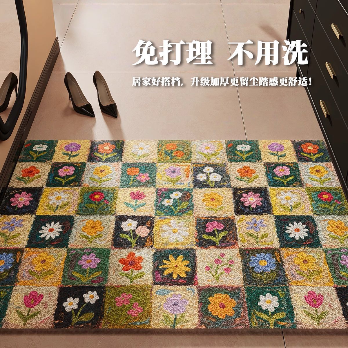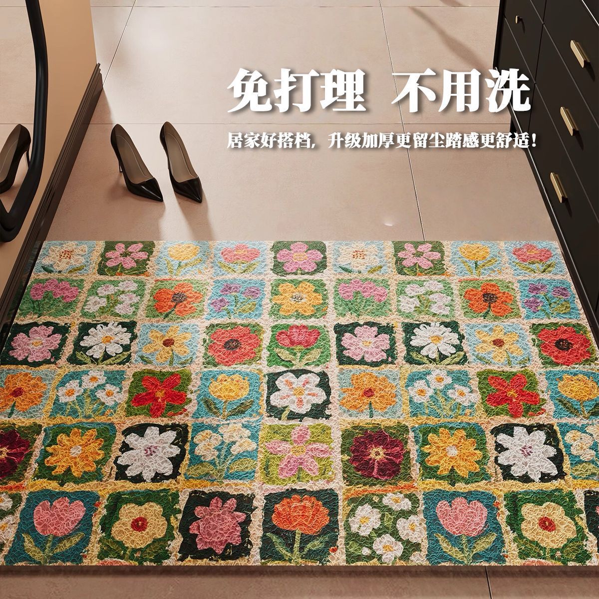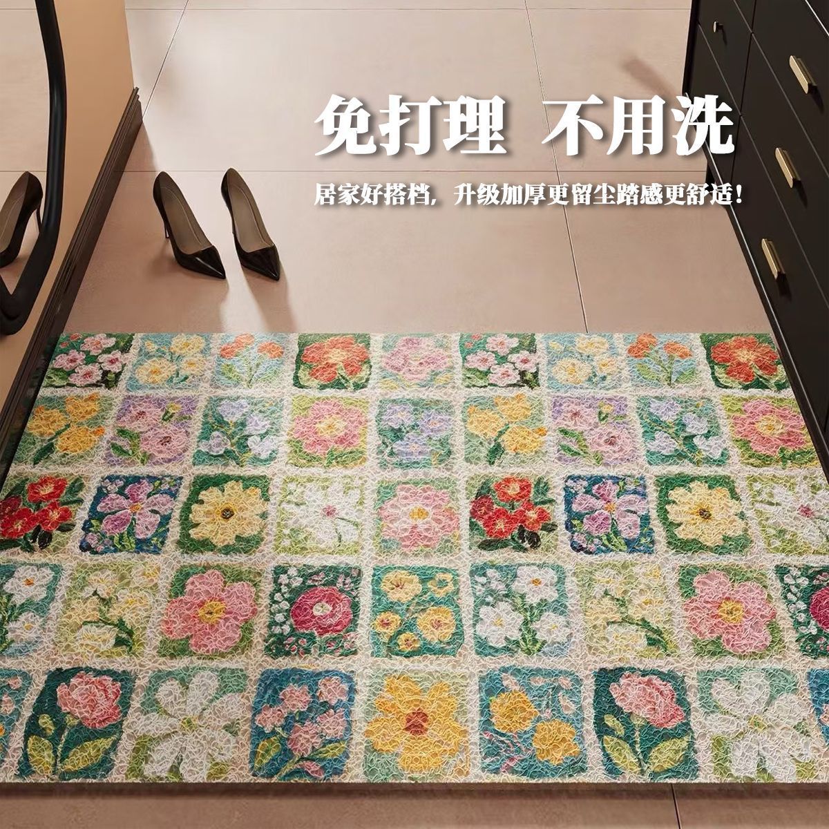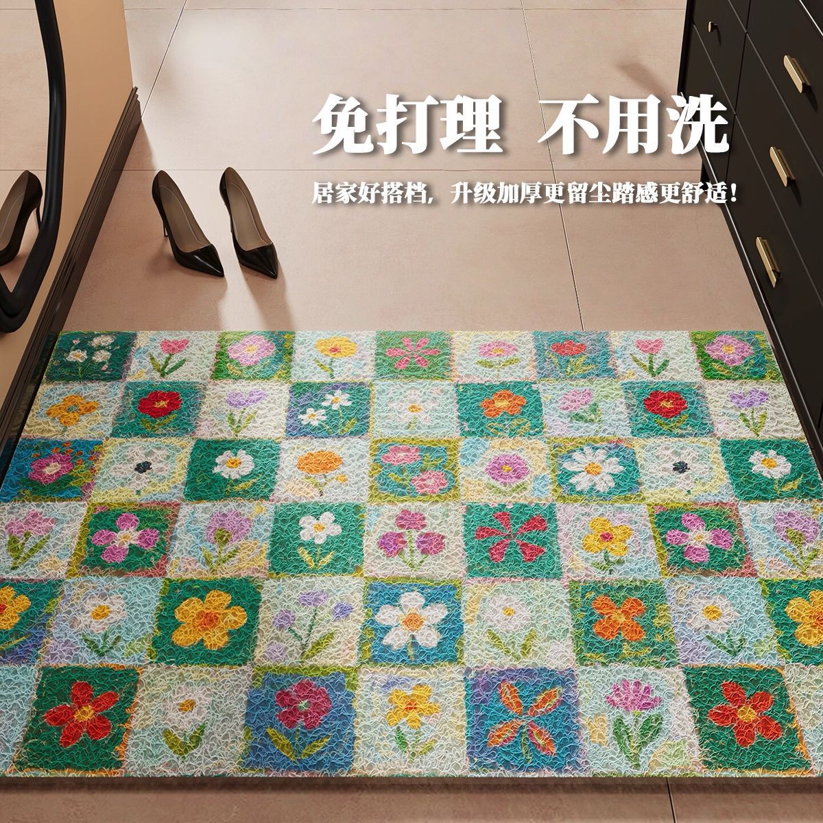 花朵入户门地垫耐脏免洗丝圈可剪裁进门地毯门口刮泥蹭土除尘脚垫