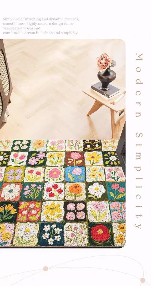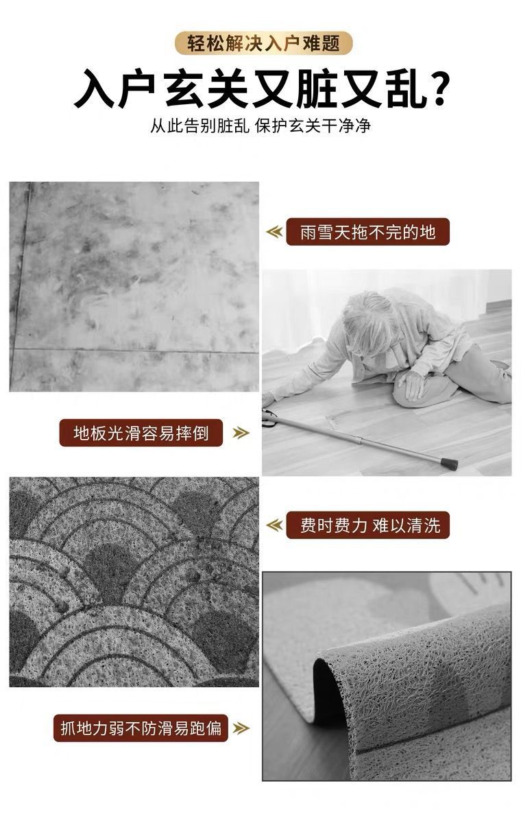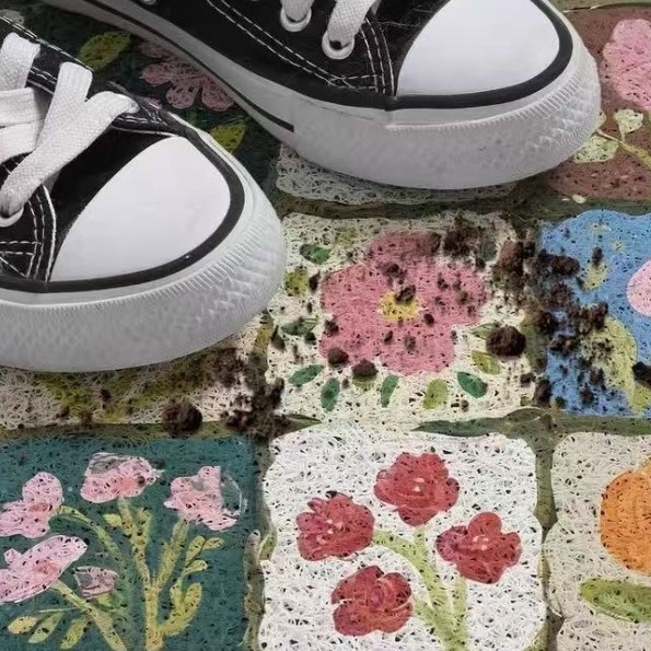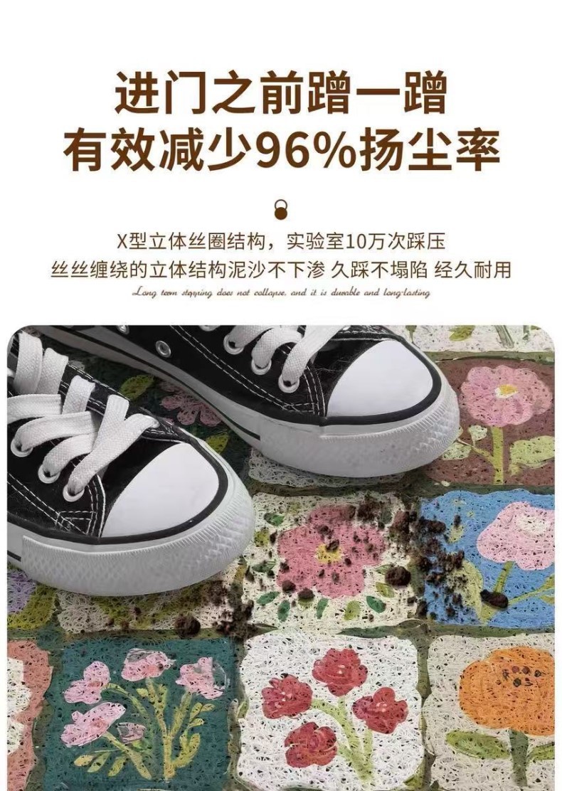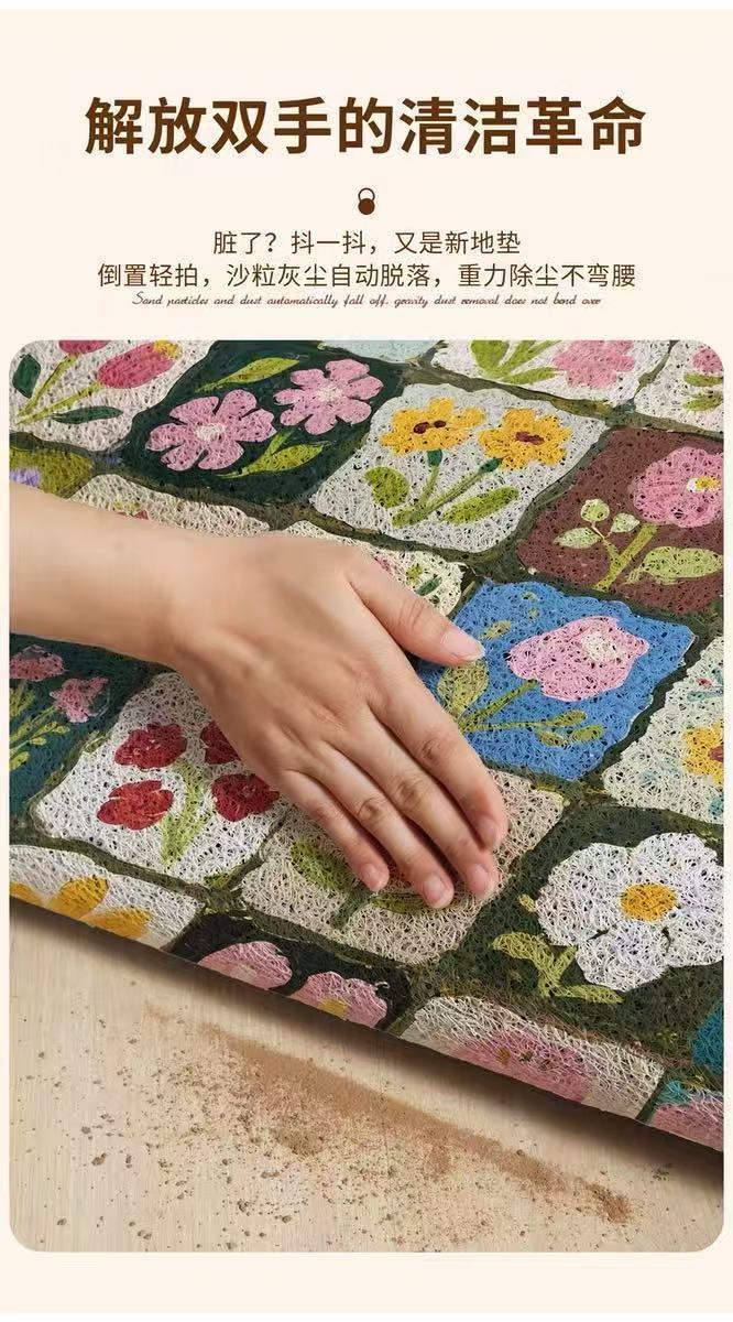 花朵入户门地垫耐脏免洗丝圈可剪裁进门地毯门口刮泥蹭土除尘脚垫