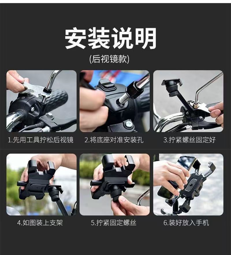 骑行防震防抖自行车摩托车后视镜手机支架外卖骑手电动车导航支架