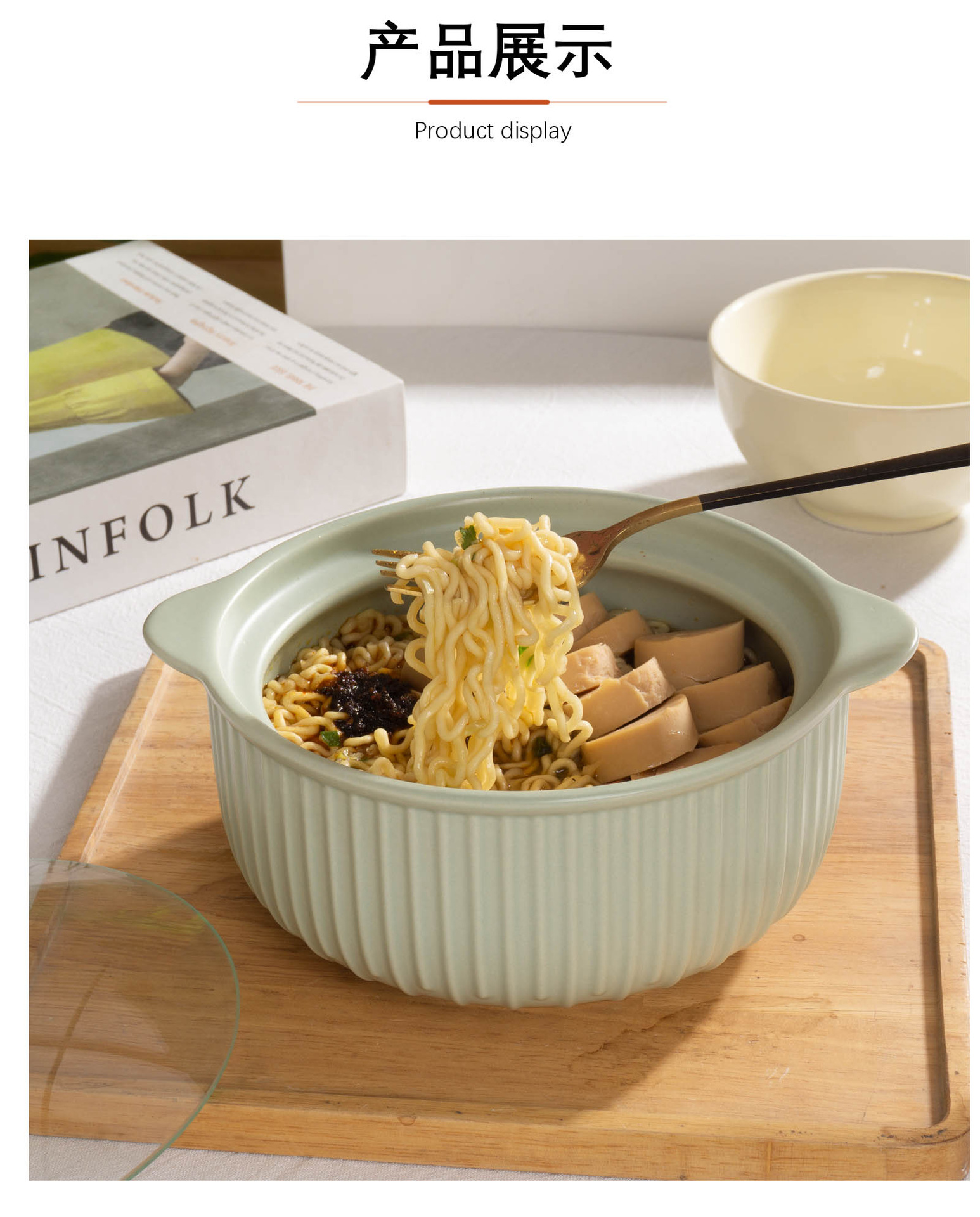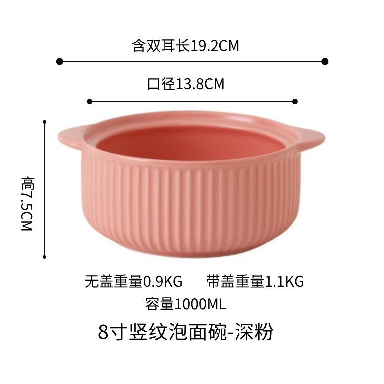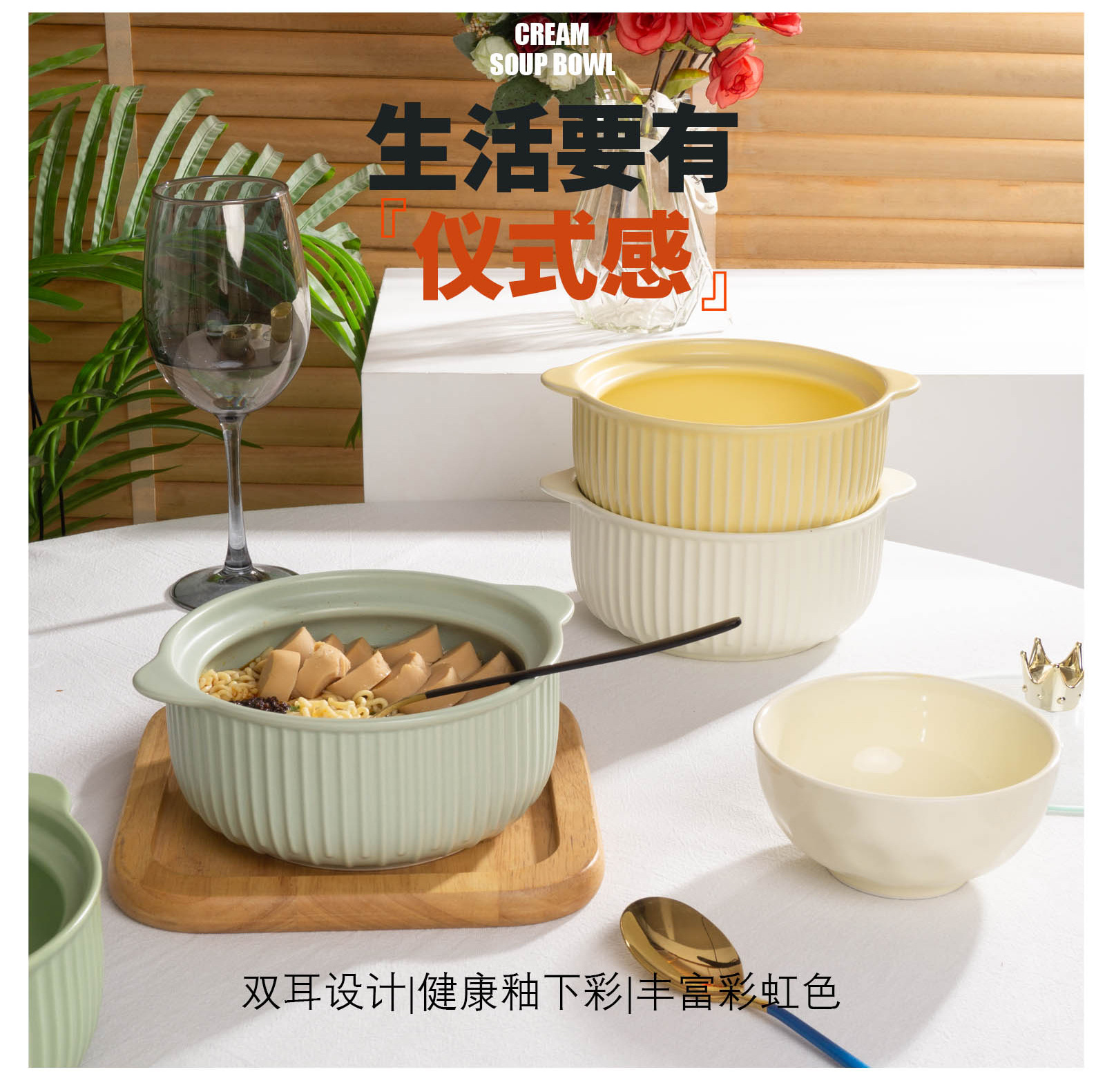 北欧ins风双耳陶瓷泡面碗带盖学生宿舍方便面碗饭碗汤碗大号餐具