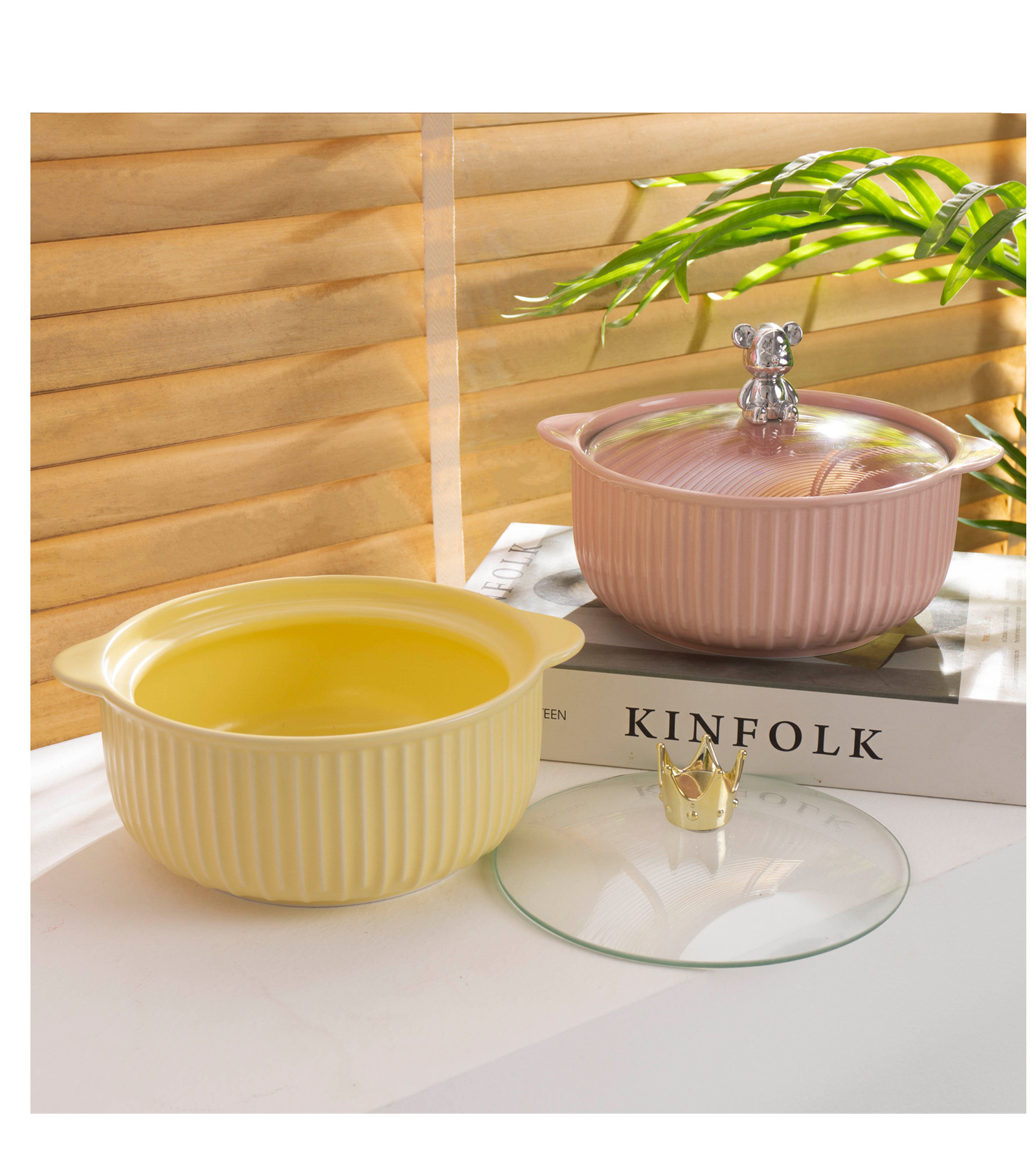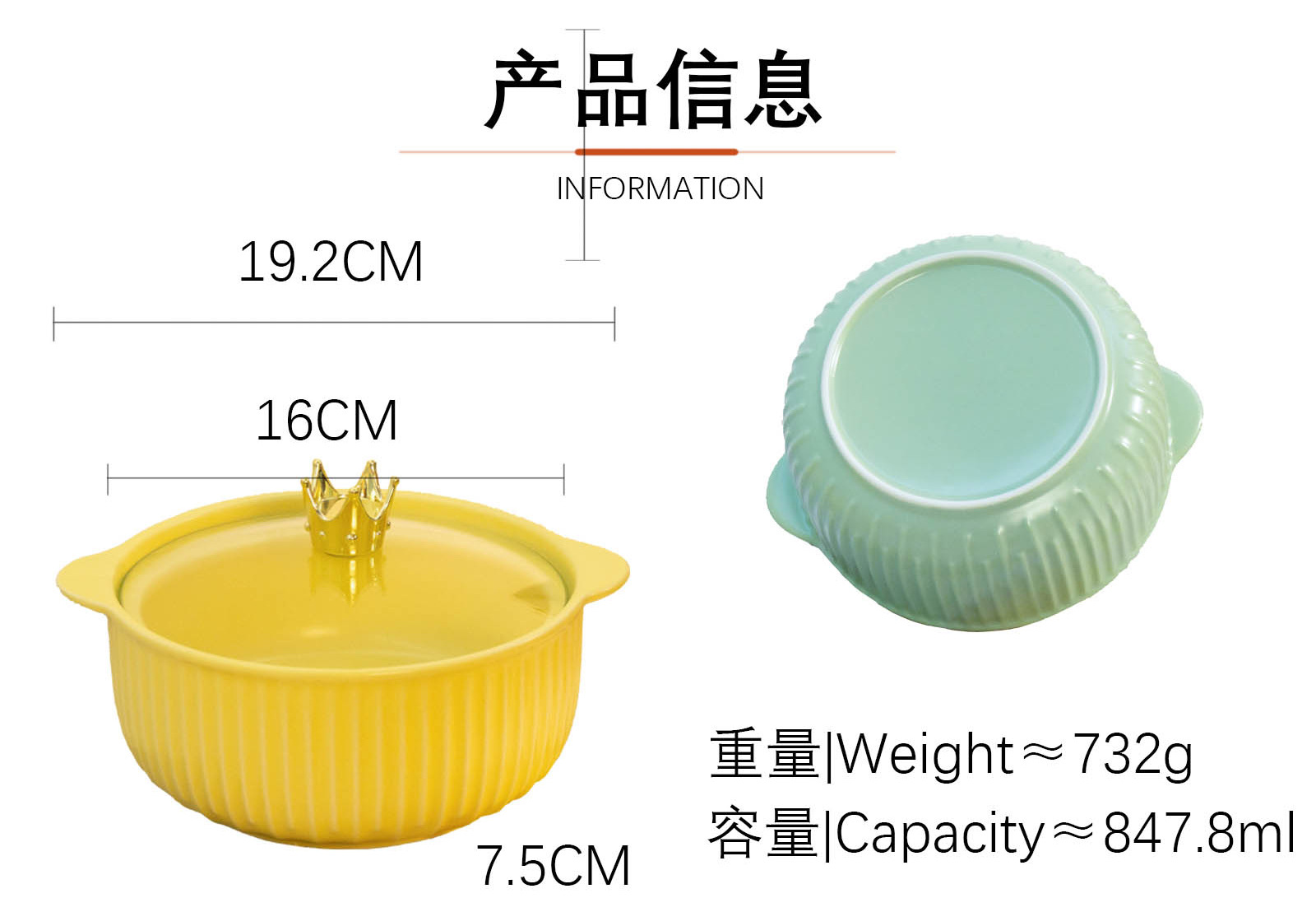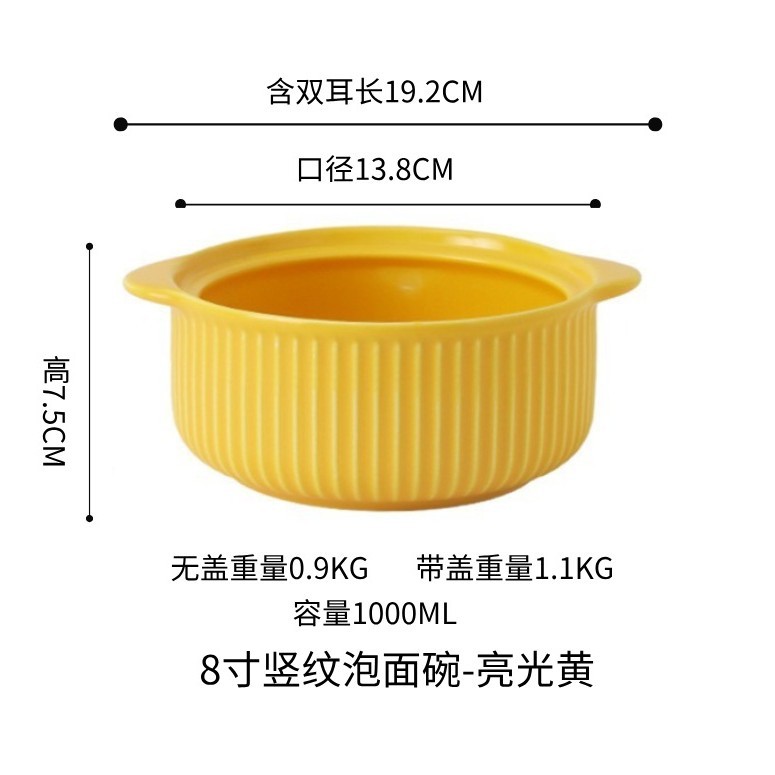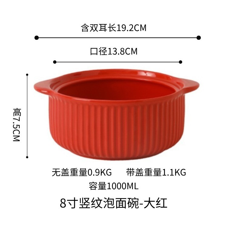北欧ins风双耳陶瓷泡面碗带盖学生宿舍方便面碗饭碗汤碗大号餐具