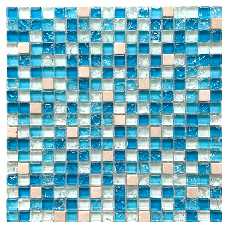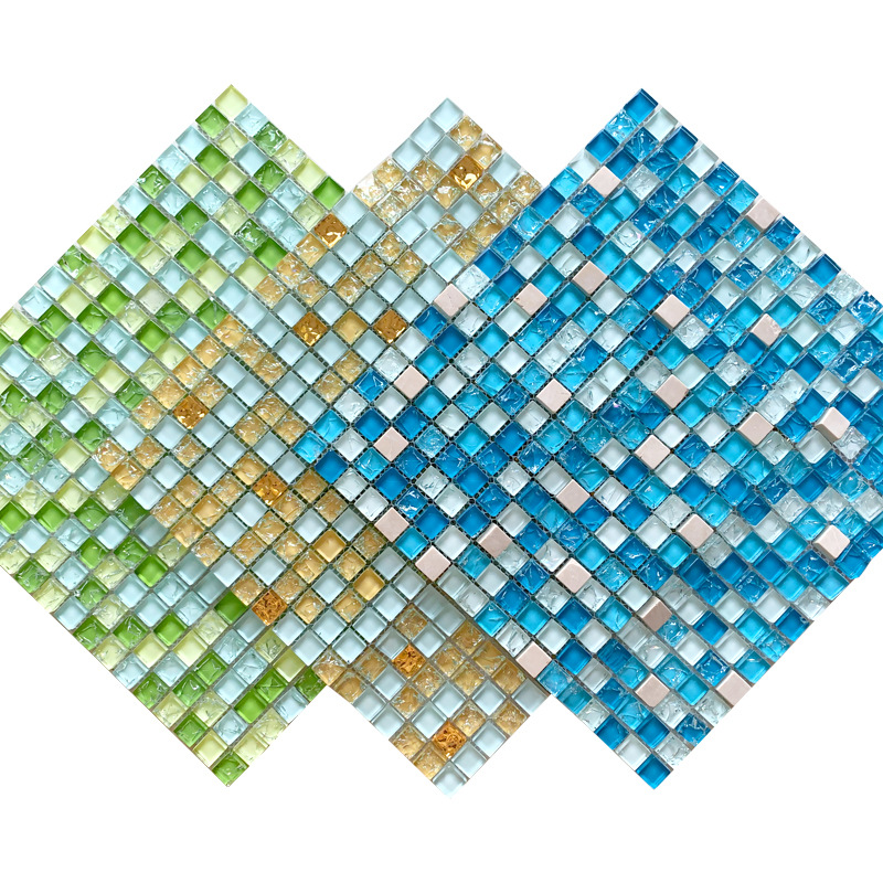水晶冰裂玻璃马赛克背景墙蓝色厨房餐厅客厅卫生间KTV欧式瓷砖