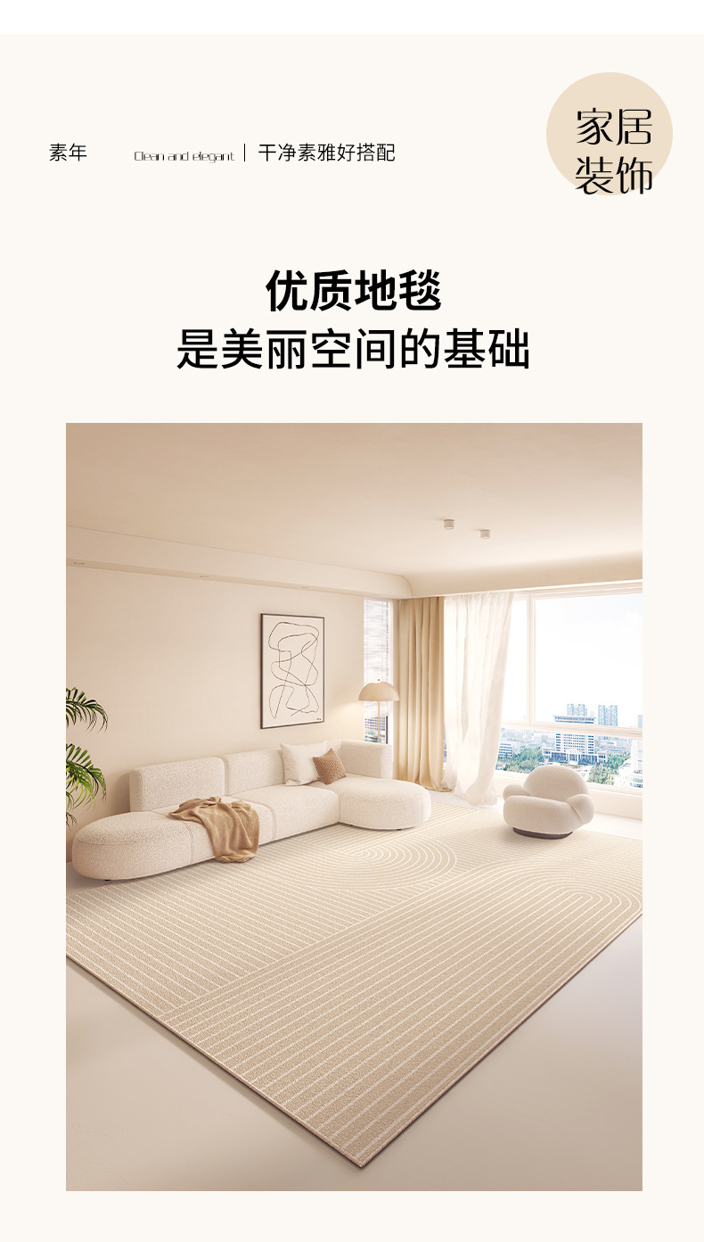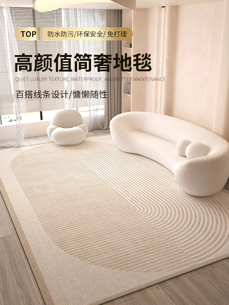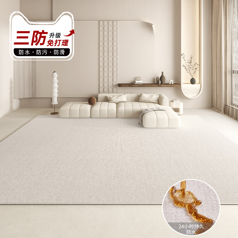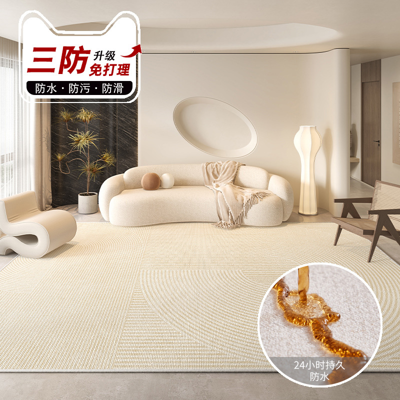 奶油风地毯客厅轻奢高级感2024新款家用沙发地垫卧室防水免洗可擦