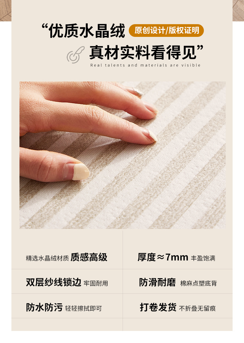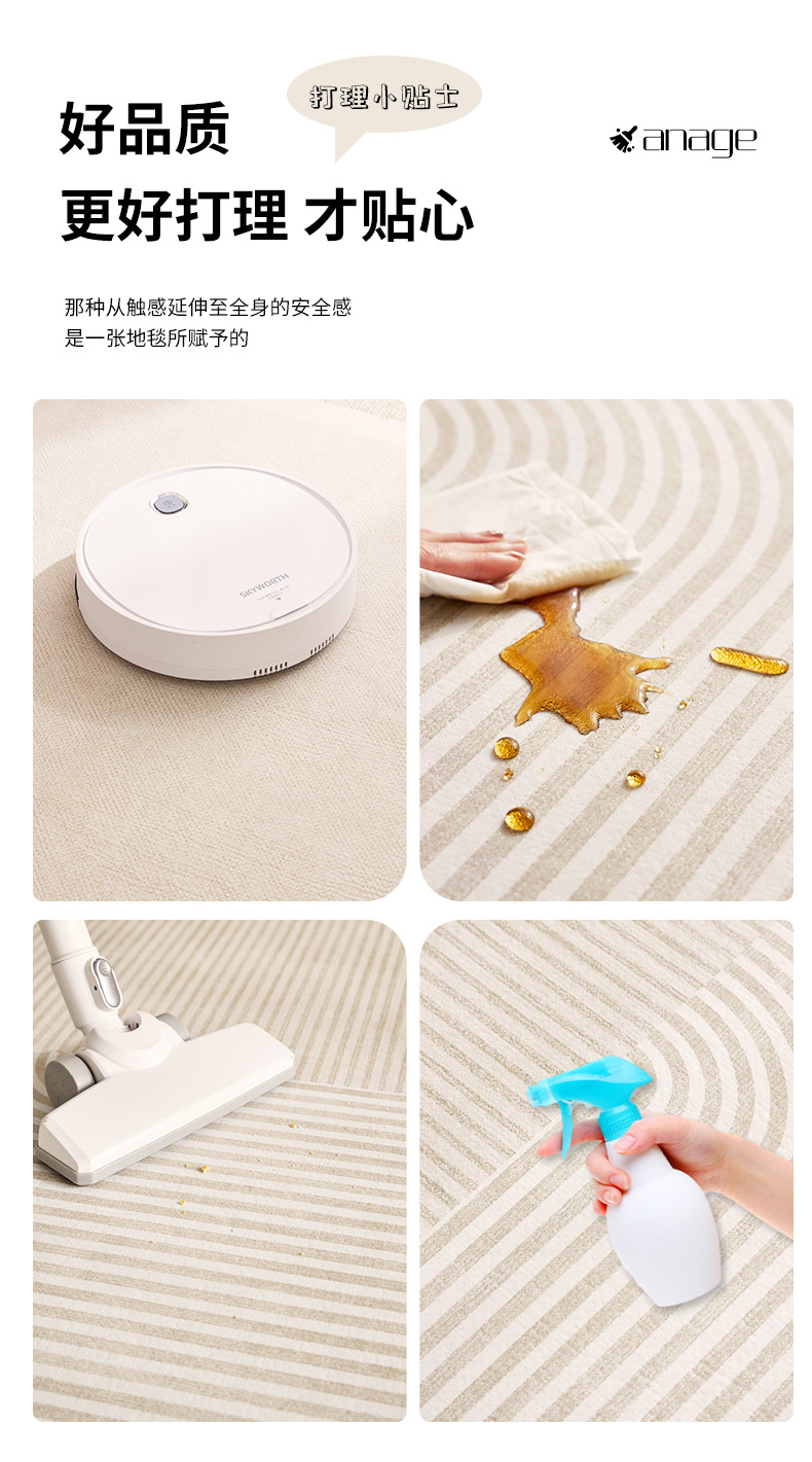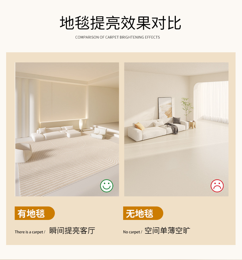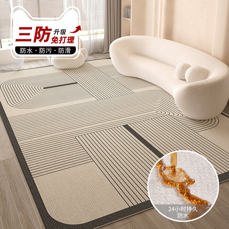 奶油风地毯客厅轻奢高级感2024新款家用沙发地垫卧室防水免洗可擦