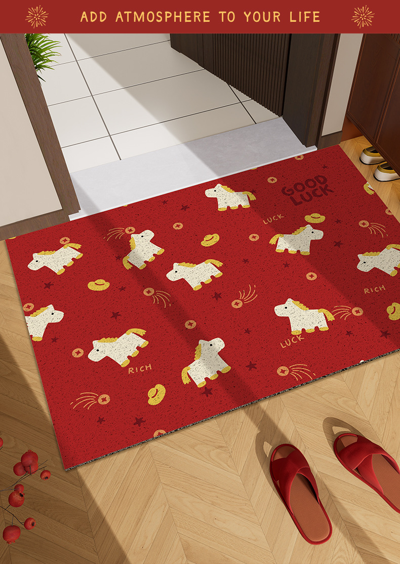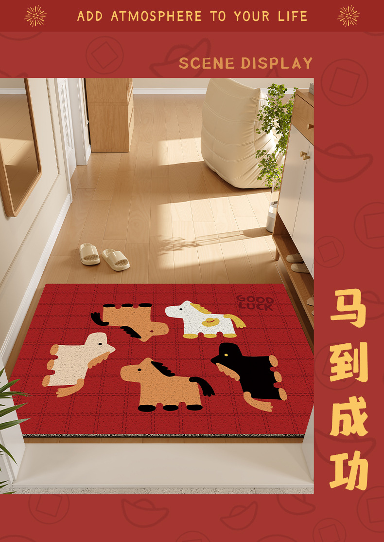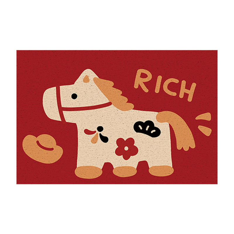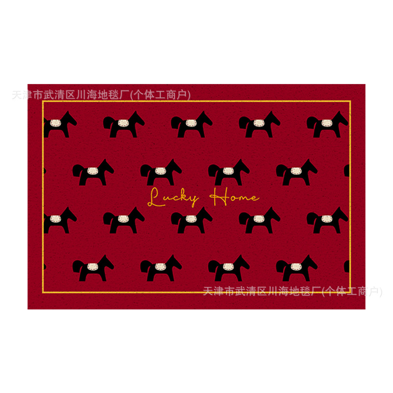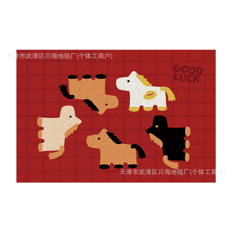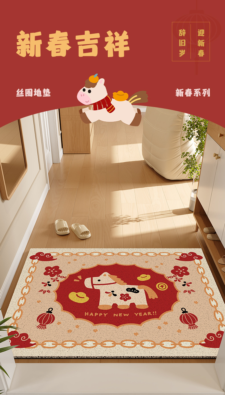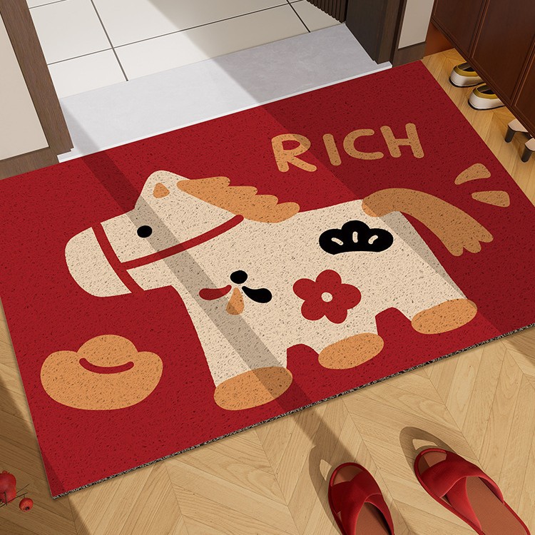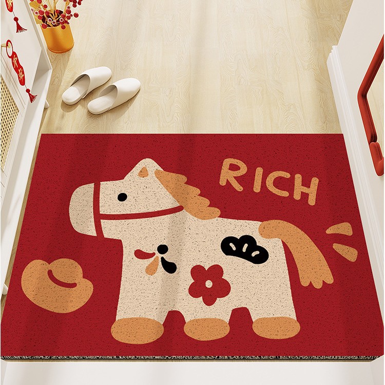 马年入户门地垫进门口丝圈脚垫家用喜庆玄关耐脏门垫新年红地毯