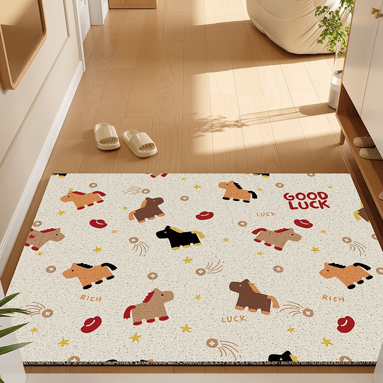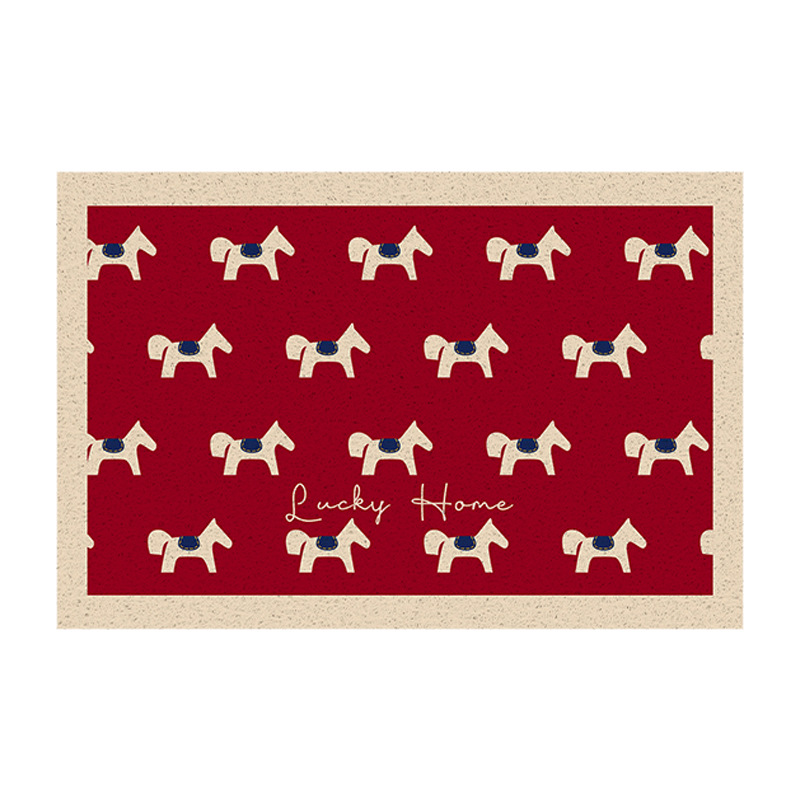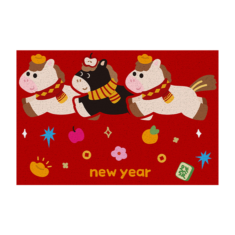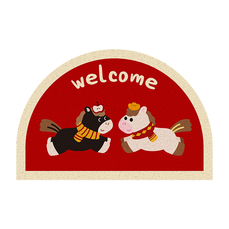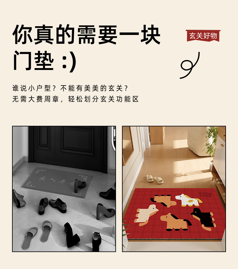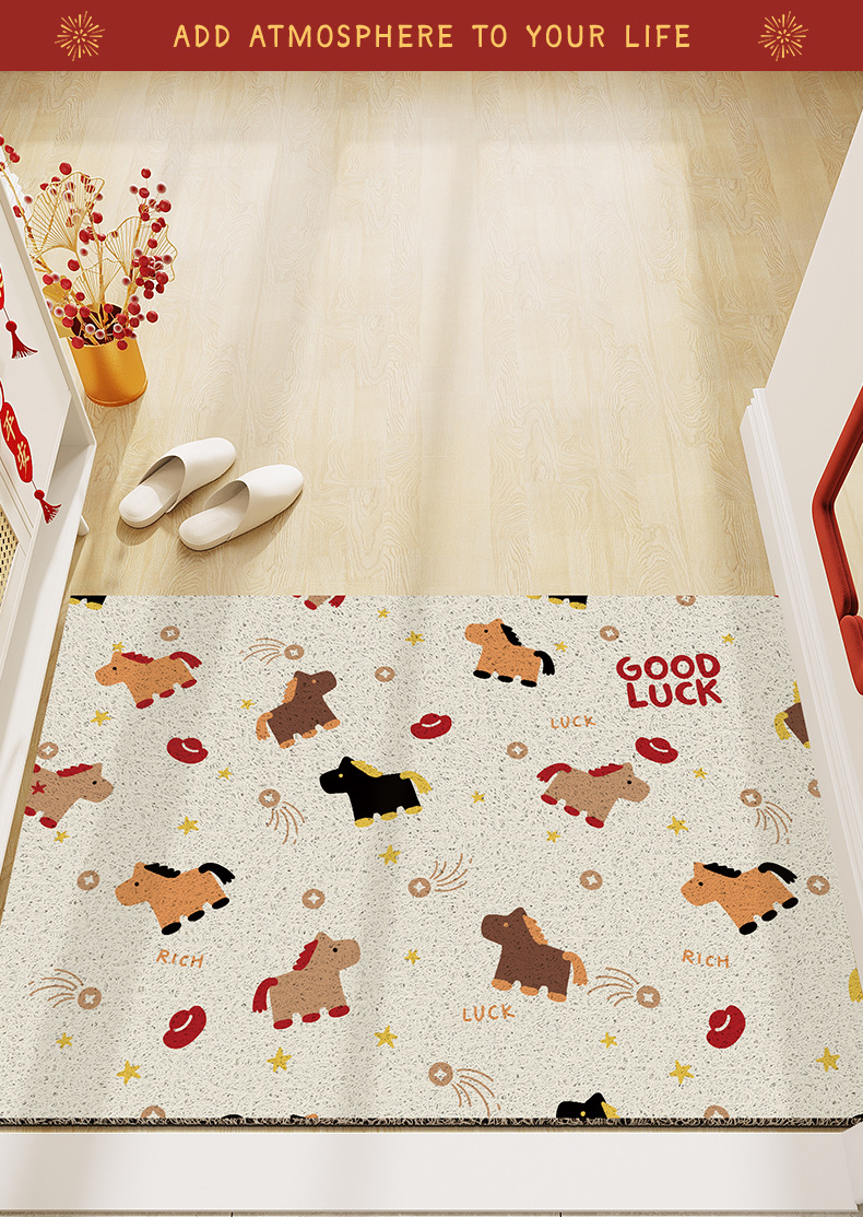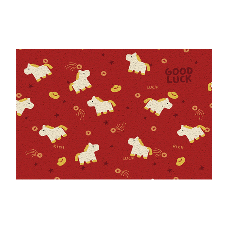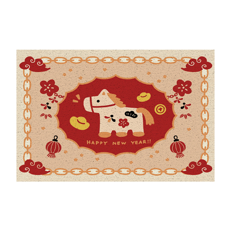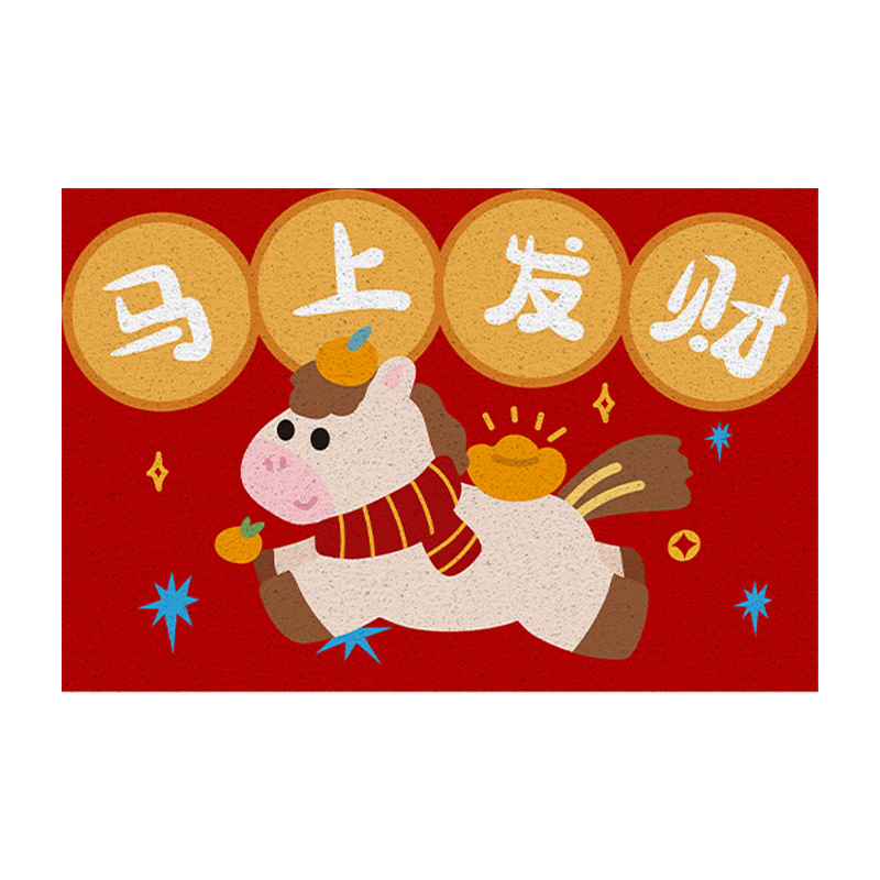 马年入户门地垫进门口丝圈脚垫家用喜庆玄关耐脏门垫新年红地毯