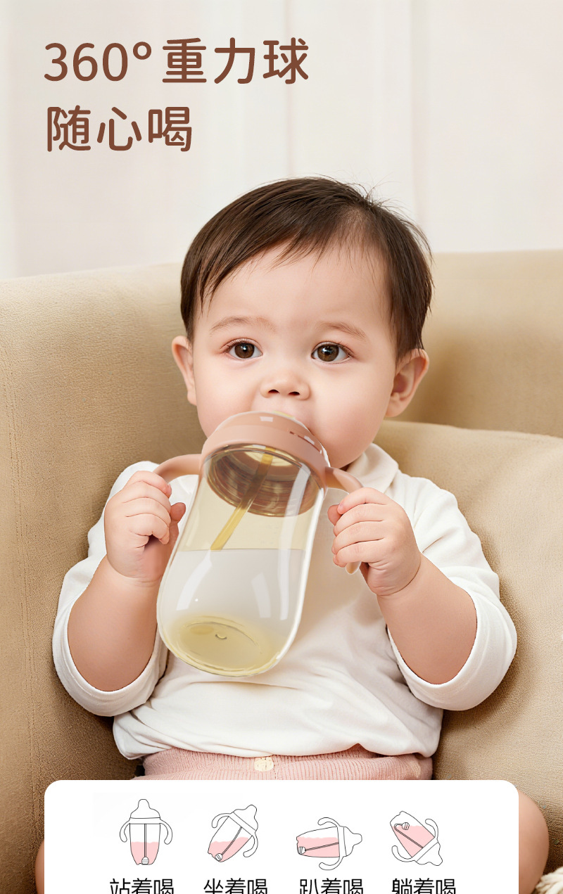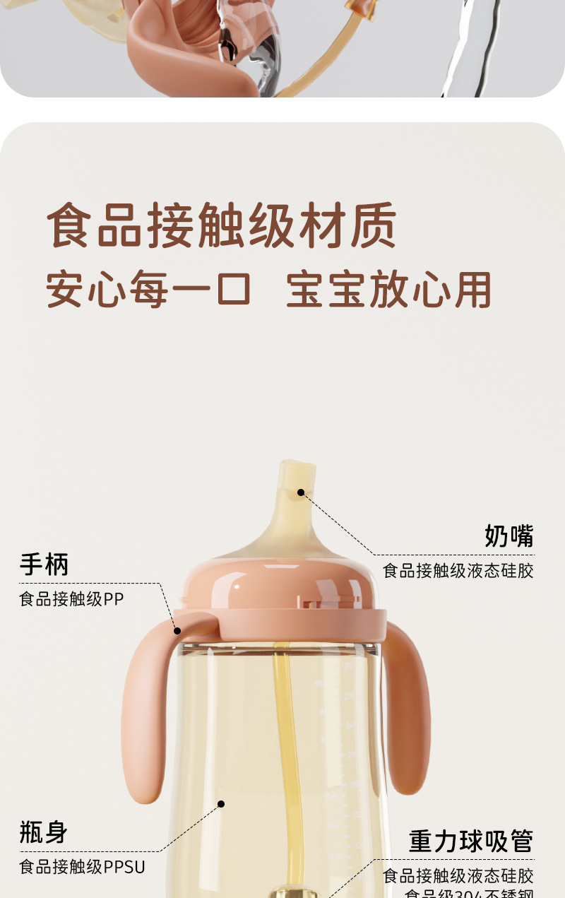 彩虹学饮杯ppsu婴儿奶瓶一岁以上品牌专供直饮吸管宝宝奶瓶直饮杯